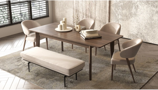 Armin Açılır Masa, başlangıçta kompakt bir masa olarak tasarlanmıştır ve açılır mekanizması sayesinde gerektiğinde daha geniş bir masa haline gelir. Bu özellik, beklenmedik misafirler için ekstra masa alanı sağlayarak, esneklik ve pratiklik sunar. Zarif balos ceviz ahşabı yüzey, sofistike bir görünüm sunarak her türlü yemek ortamına lüks bir atmosfer katar. Bu masa, küçük ve büyük mekanlar için esnek bir çözüm sunarak, yaşam alanlarınıza şıklık ve işlevselliği bir arada getirir. Açılır masa, modern yaşam alanlarında alan optimizasyonu ve stilin mükemmel birleşimini sunarak evinizi hem fonksiyonel hem de estetik açıdan zenginleştirir.
