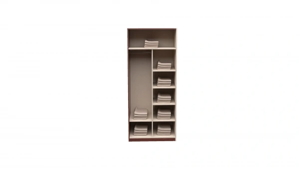 2 kapaklı ana gövde, Armin modüler dolap sisteminin temel bileşenidir. LED aydınlatmalı askı borularıyla kullanım kolaylığı sağlarken, dar raf ekleme seçeneği ile kişisel depolama ihtiyaçlarına uyum sağlar. Kapak seçenekleriyle dolap görünümü değiştirilebilir.