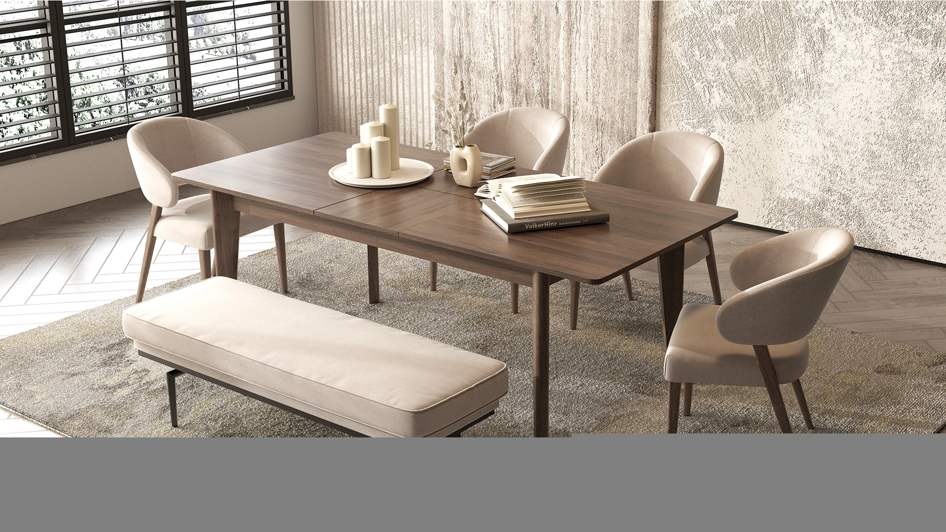 Armin Yemek Odası Takımı, zarif ve modern tasarımıyla yemek odalarınıza sofistike bir dokunuş katar. Takımın her parçası, estetik ve fonksiyonelliği bir arada sunarak yaşam alanlarınızı zenginleştirir. Yüksek kaliteli malzemelerle üretilmiş mobilyalar, uzun ömürlü kullanım sağlar ve dayanıklılığı garanti eder. Geniş yemek masası, aile buluşmaları ve misafir ağırlamaları için ideal bir alan sunar. Sandalyelerin ergonomik tasarımı, uzun süreli oturumlarda konfor sağlar. Depolama çözümleri geniş konsolu yemek takımlarınızı ve dekoratif eşyalarınızı düzenli bir şekilde saklamanıza olanak tanır. Modern çizgileri ve zarif detaylarıyla Armin Yemek Odası Takımı, her türlü dekorasyon tarzına uyum sağlar ve yemek odanızda hem estetik hem de pratik bir kullanım sunar. 7 yıl garantilidir.