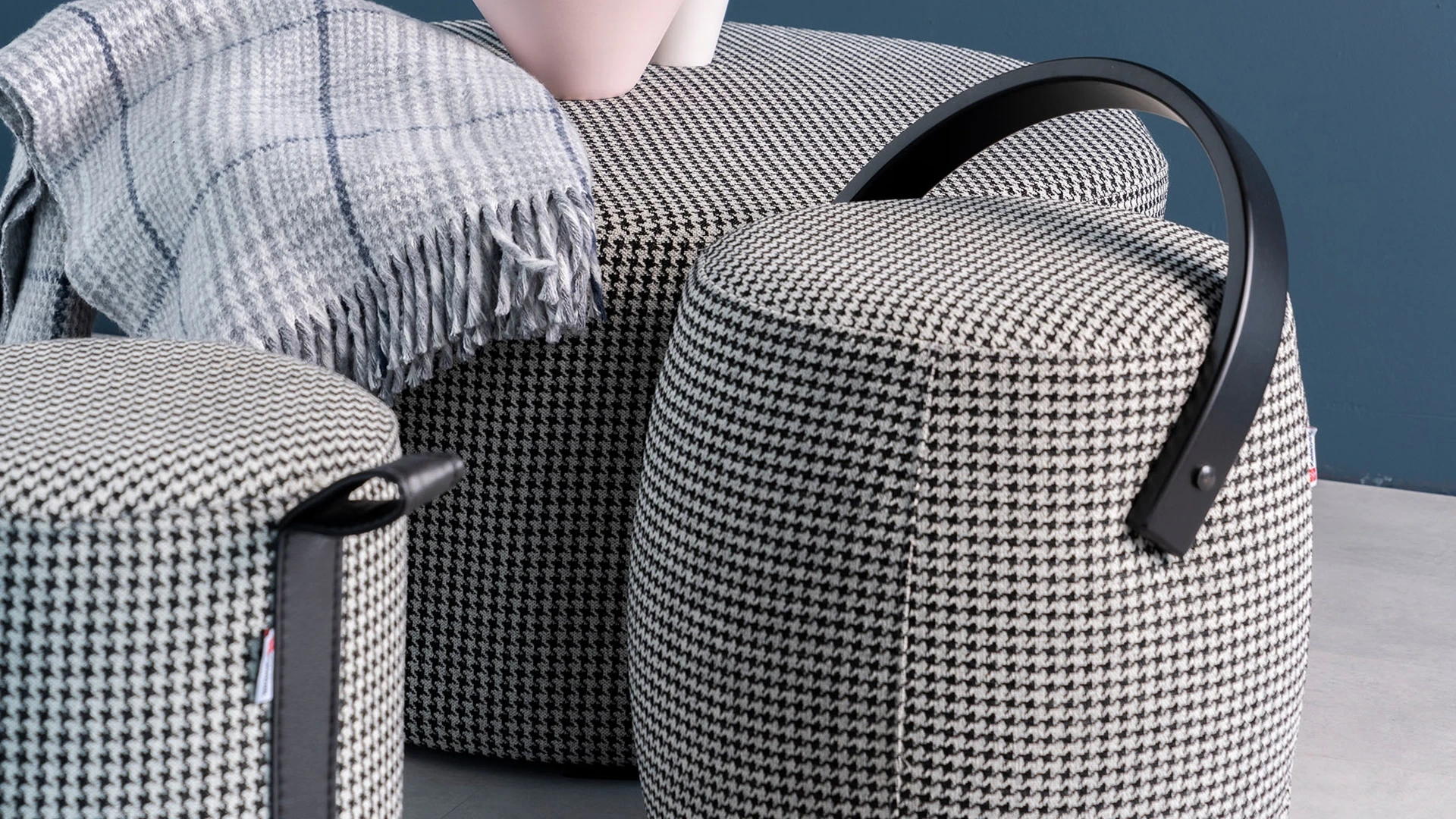 Kazayağı desenli kumaş döşemesi ve kulplu yapısıyla göz dolduran Bellis Puf, sıra dışı tarz arayanların tercihi olmaya hazır.