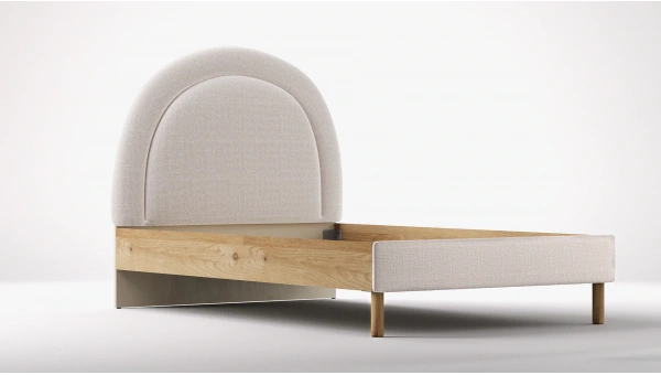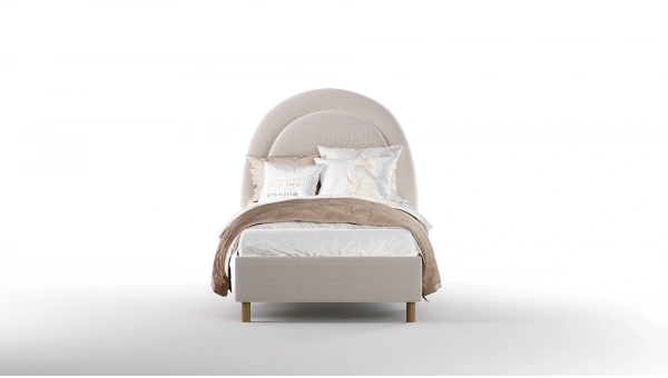Yatak odasında başlığı sade ve alçak tasarlanmış yataklar, modern tarzı tamamlar. Açık tonlardaki
