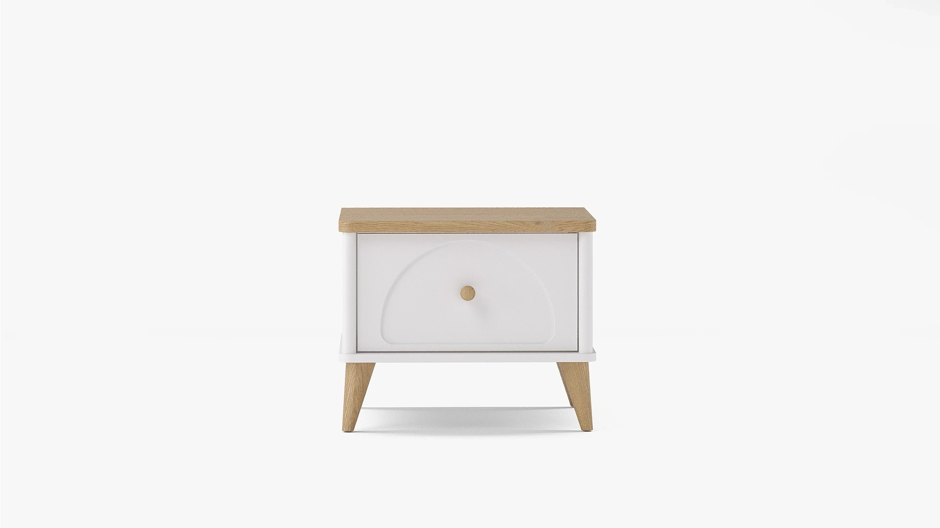 Yatak başucunda kompakt ve fonksiyonel bir tamamlayıcıdır. Çekmecesiyle eşyalarınızı düzenli saklamanızı sağlar.