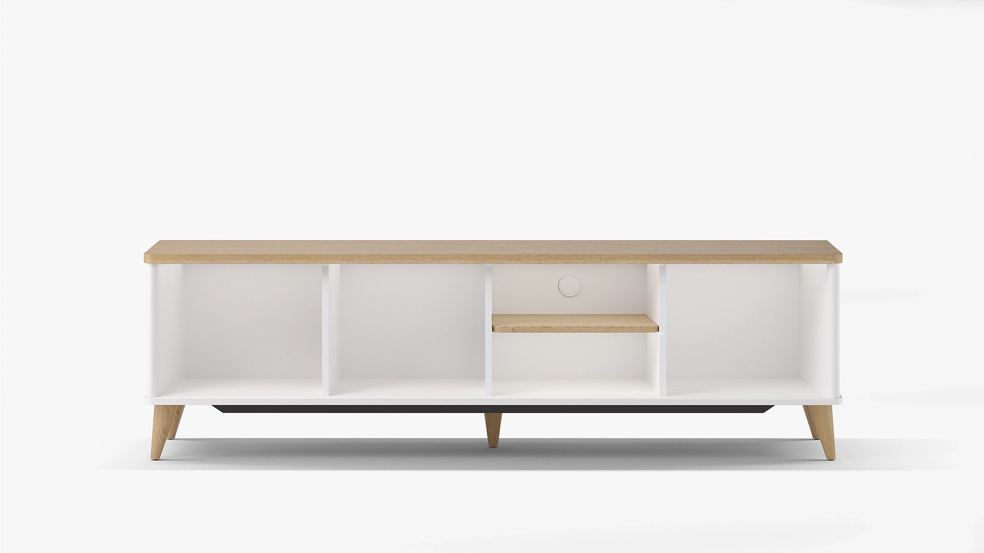 Üç kapaklı ve bir açık raflı yapısıyla fonksiyonel bir TV alanı sunar.