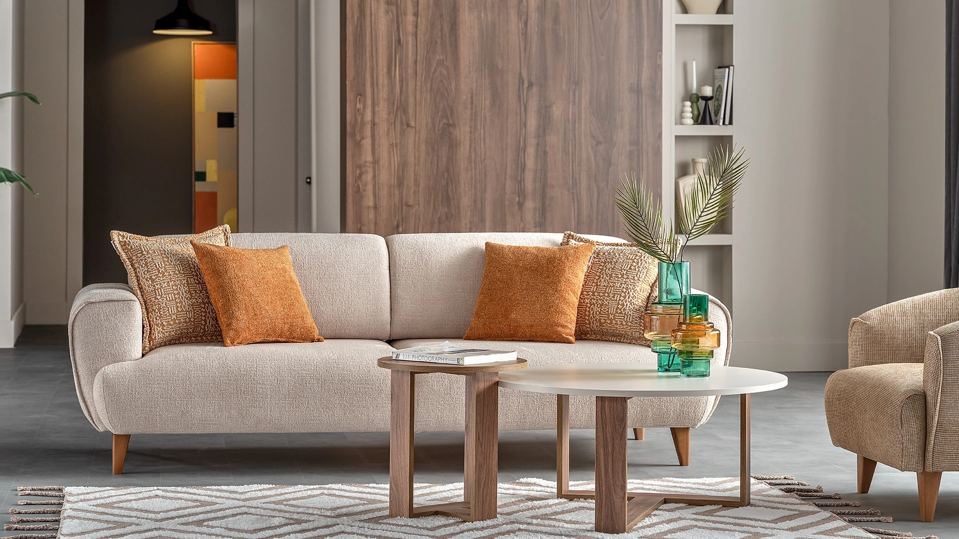 Oval hatlarıyla zerafeti salonunuza taşıyan Calina Koluk Takımı, yumuşak dokulu kumaşı ve rahat döşemesiyle konforlu oturum sunuyor. Yatak olabilen ikili ve üçlü koltuklarla fonksiyonel kullanım sunan Calina Koltuk Takımı, yerden yüksek ayak yapısıyla da temizlik kolaylığı sağlıyor.Calina Koltuk Takımı, farklı kumaş seçenekleri ile de kendi tarzınızı yaratmanıza olanak tanıyor.