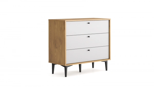 Calina Dar Şifonyer, dört çekmeceli yapısıyla ve yalın tasarımıyla dikkat çekiyor. Eşyalarınız için dar mekanlarda dahi ekstra alan yaratan Calina Dar Şifonyer, aytaşı beyaz ve ceviz renklerinin harika uyumunu gözler önüne seriyor.