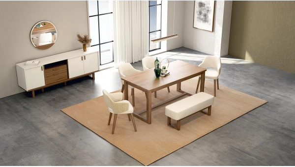 Calina Sabit Masa, doğal ceviz rengi ve sade çizgileriyle en keyifli sofralarınızın yıldızı olmaya hazır. Farklı ayak tasarımı ile dikkat çeken Calina Açılır Masa, minimal tasarımıyla yaşamınıza şıklık ve konfor katmaya hazır.