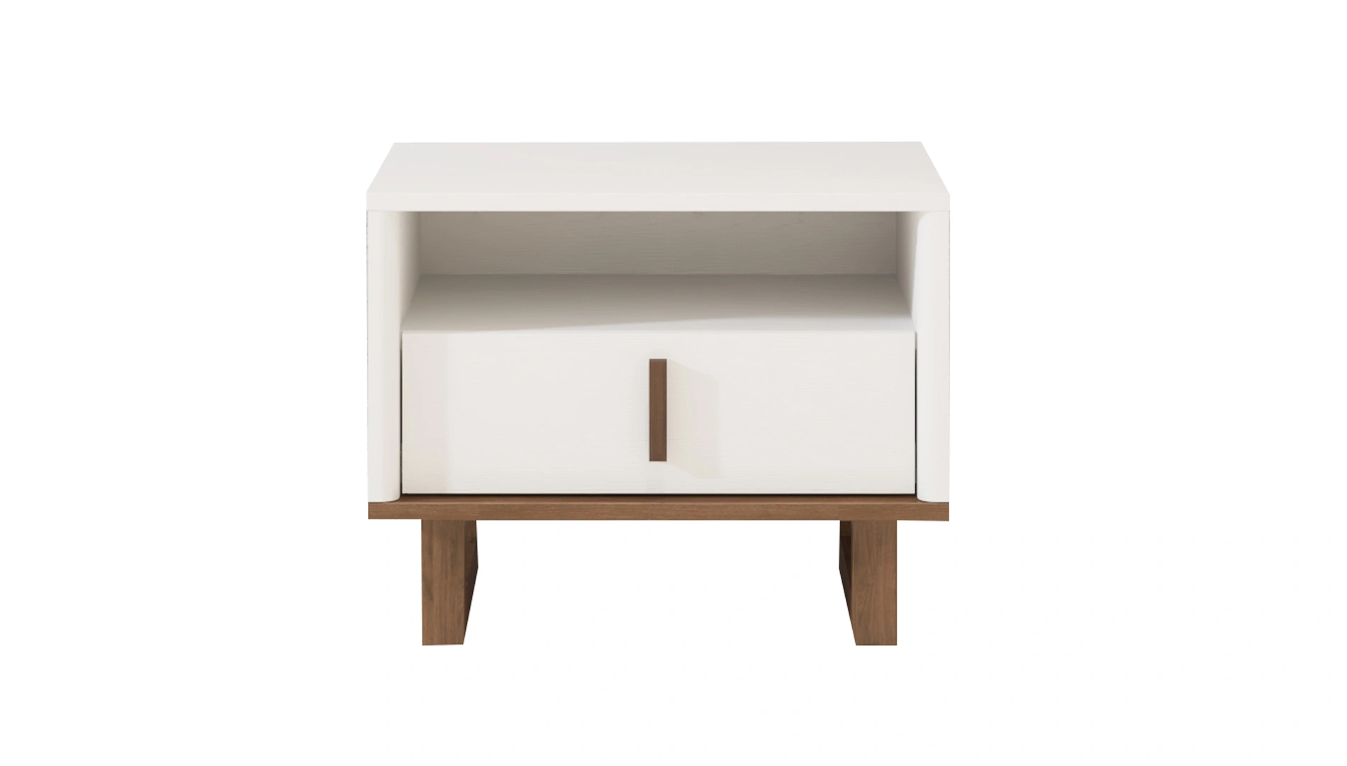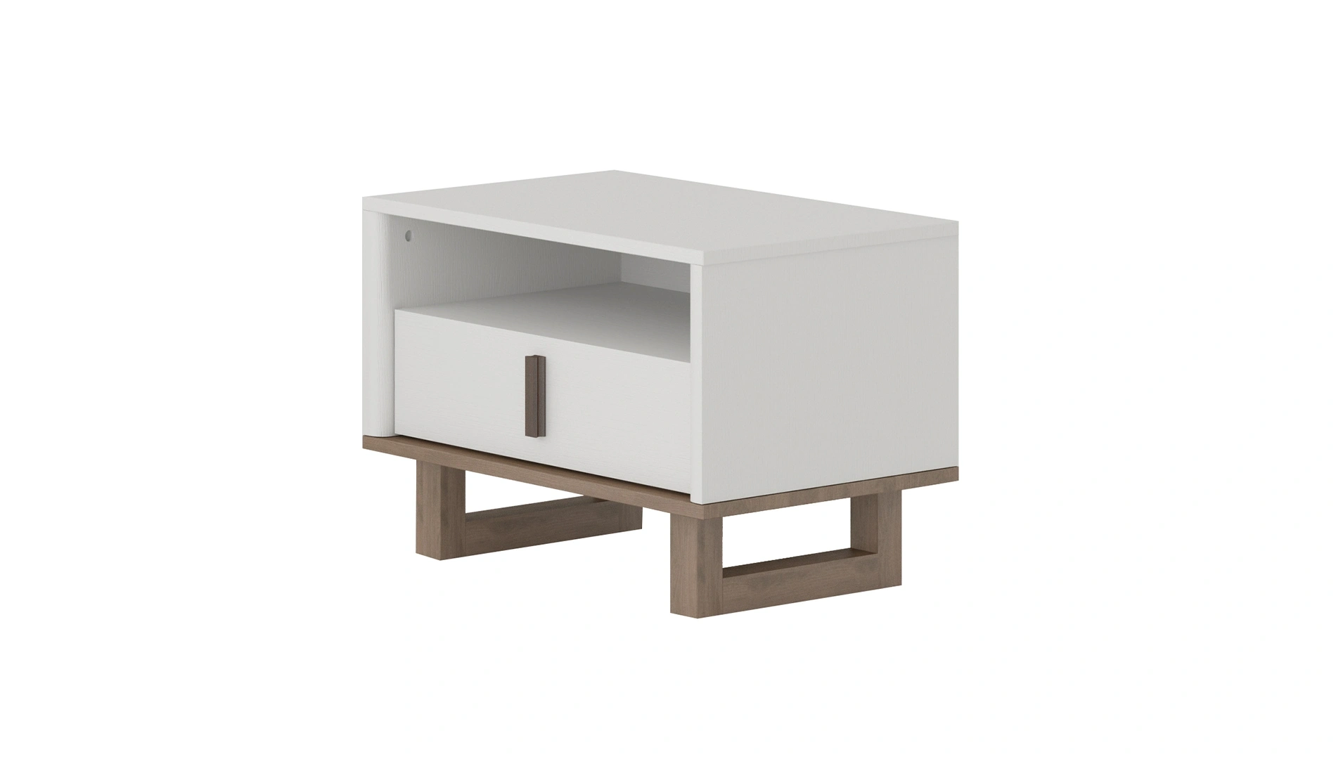 Beyaz ve ceviz renklerinin eşsiz uyumunu sunan Calina Komodin, geometrik hatlarıyla göze çarpıyor. Calina Komodin, yerden yüksek ayak tasarımıyla temizlik kolaylığı sağlarken, eşyalarınız için ekstra alan sağlıyor.
