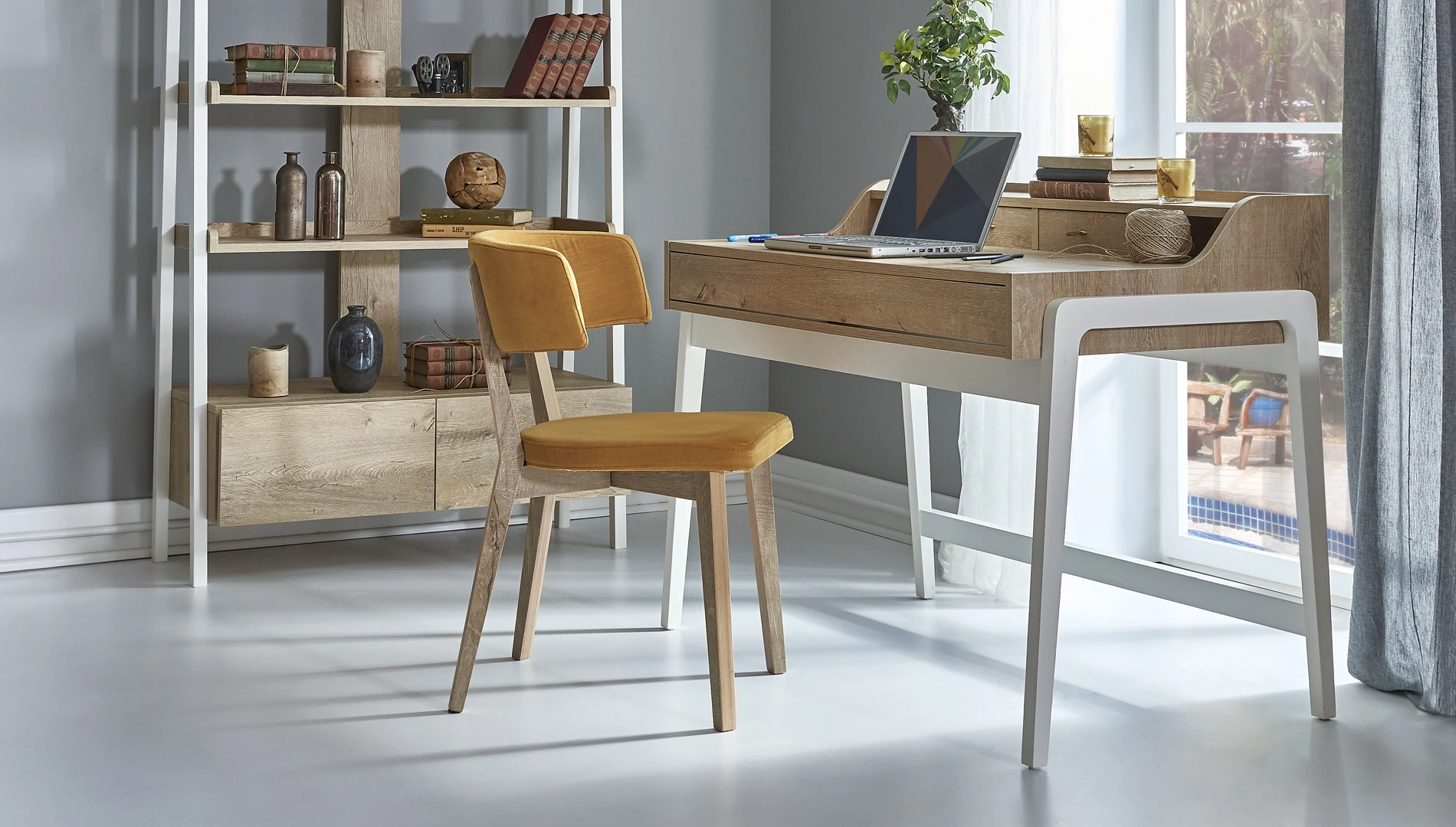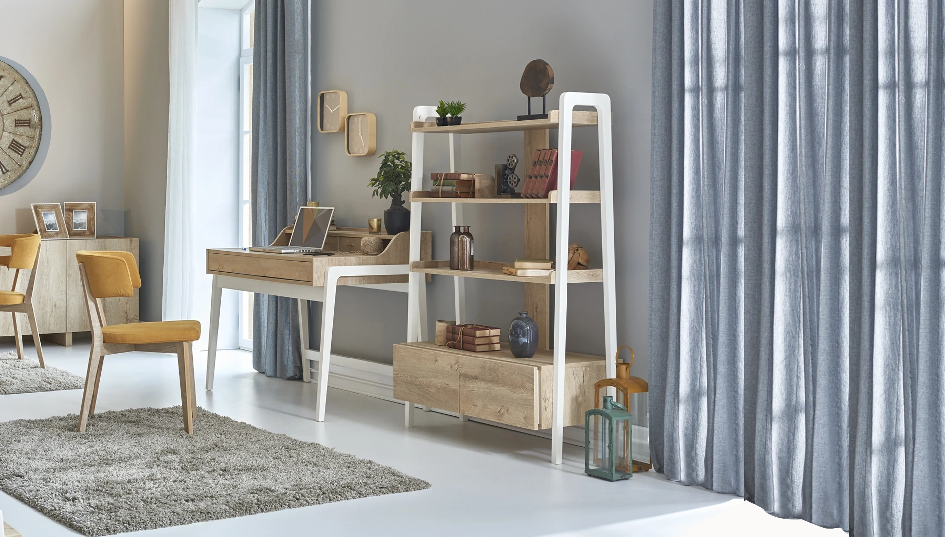 Cosso Home Ofis Takımı, modern tasarımı ve doğal meşe kaplaması ile ev ofislerinize zarafet getirir. Takımın ana parçaları olan çalışma masası, kitaplık, keson ve TV alt ünitesi, fonksiyonelliği ve estetiği bir araya getirir. Çalışma masası geniş bir çalışma alanı sunarken, kitaplık düzenli ve şık bir depolama alanı sağlar. Keson, ekstra depolama ihtiyacınızı karşılarken, TV alt ünitesi de multimedia ekipmanlarınız için ideal bir çözüm sunar. Takımda yer alan yan sehpa ve orta sehpa, dekoratif ve işlevsel açıdan tamamlayıcı parçalardır. Cosso Home Ofis Takımı, estetik detayları ve fonksiyonel tasarımı ile ev ofislerinizi modern ve kullanışlı bir hale getirir.