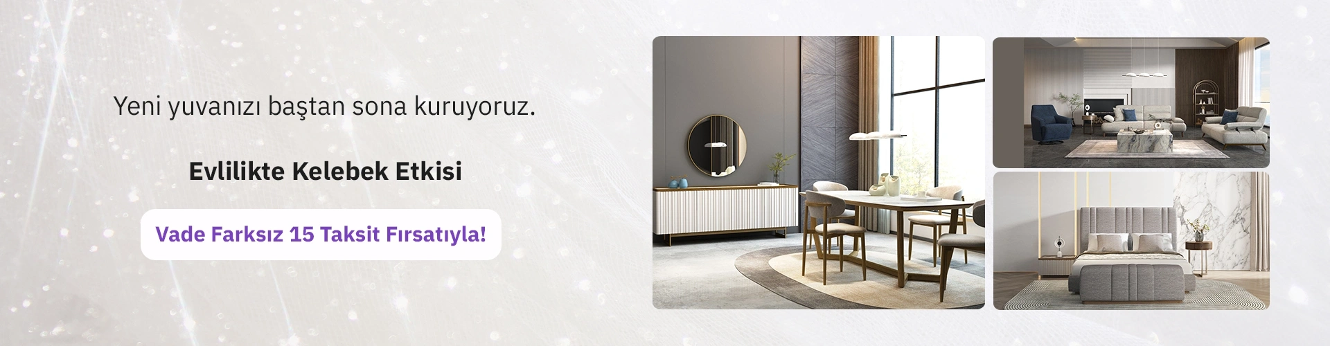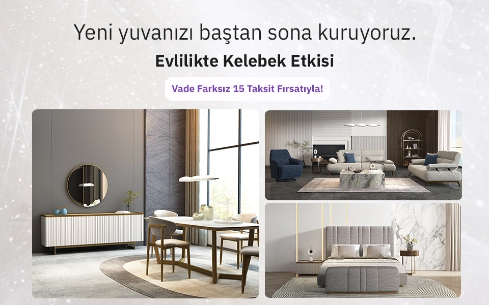 Yeni bir yaşam kurarken, her detay sizi yansıtmalı… Kelebek Evlilik Setleri, seni anlayan tasarımlarla aşkınızı evinize taşır. Yalın çizgiler, zarif detaylar ve konforu birleştiren koleksiyonlarımız; birlikte geçireceğiniz her anı daha özel kılar. Yatak odasından yemek odasına, oturma alanlarından tamamlayıcı parçalara kadar her şey, sizin hikâyenizi anlatmak için tasarlandı. Çünkü Kelebek’te her detay, seni anlayan tasarımlar felsefesiyle şekillenir.