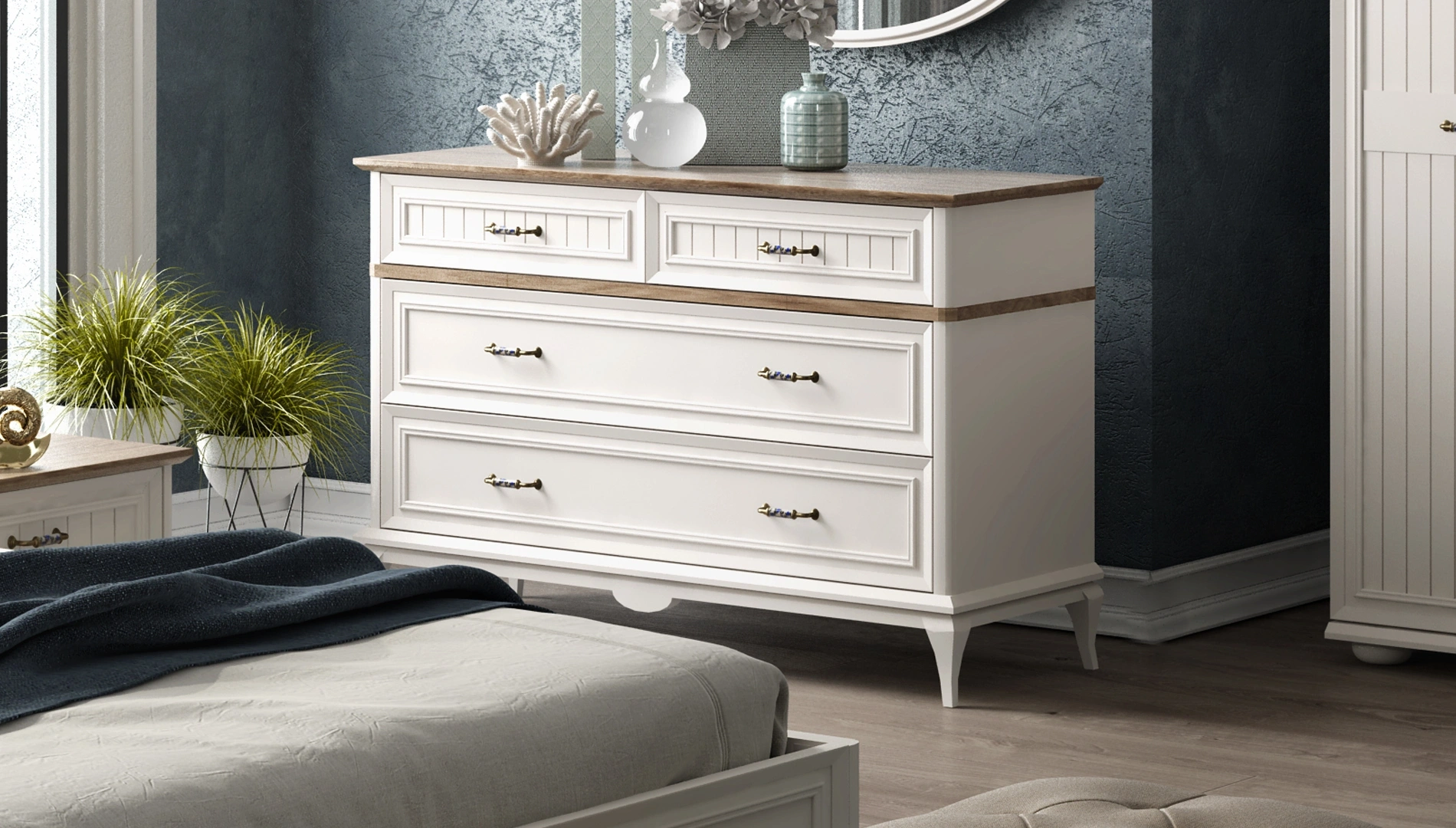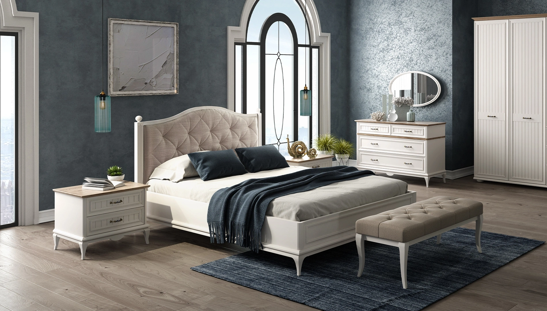Country tarzın şık ve güçlü tasarım anlayışıyla göz kamaştıran Angelic Yatak Odası Takımı, fonksiyonelliği ile yaşamınıza konfor katıyor. 3, 4, 5, 6 kapaklı ya da sürgülü olmak üzere birçok dolap alternatifi sunan Angelic Yatak Odası Takımı, yerden yüksek ayak yapısıyla temizlik kolaylığı sağlıyor.