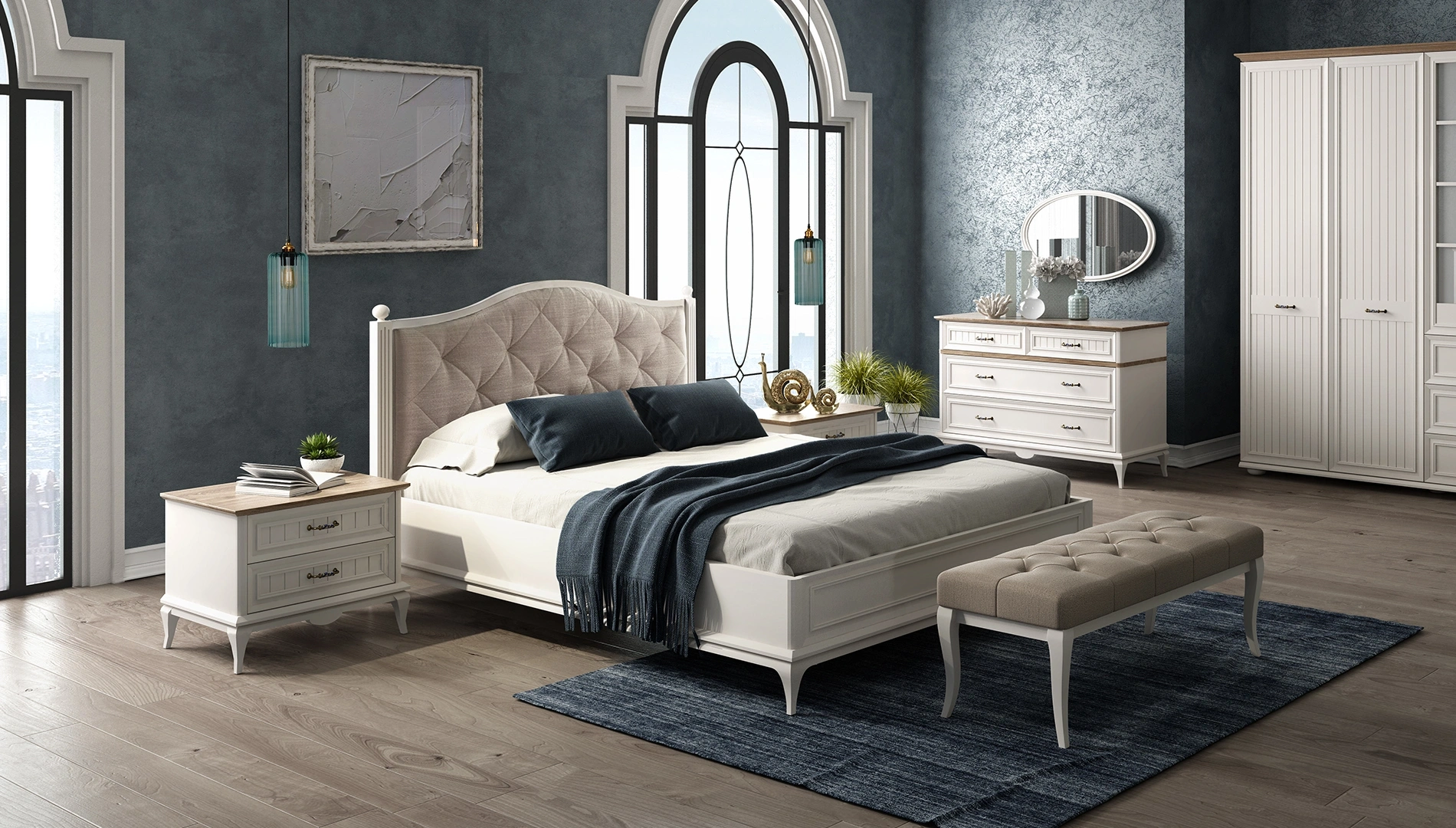 Angelic Bedstead and Headboard, brings a warm and stylish touch to your bedroom with its country style. Providing extra space for your items with its storage, Angelic Bedstead offers extra comfort with its beige color upholstered Headboard.