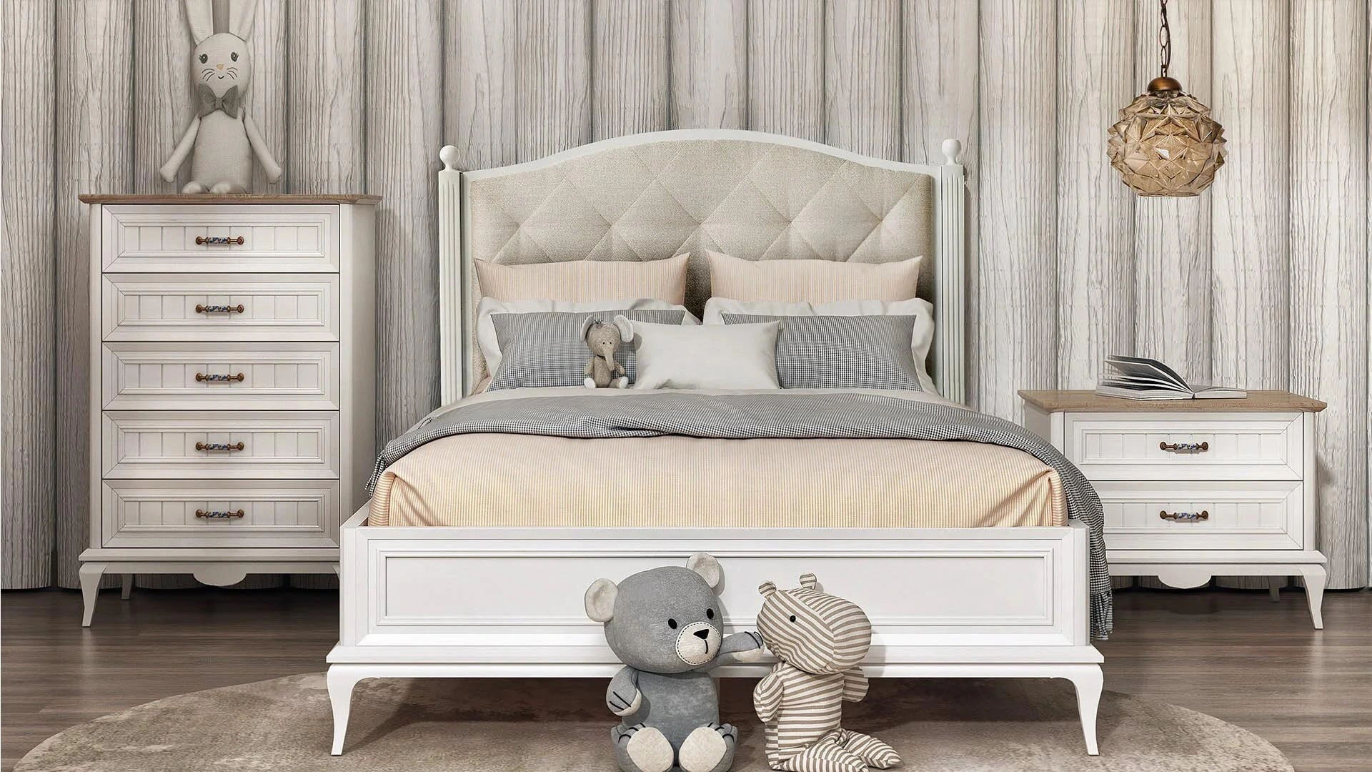 Angelic Bedstead and Headboard, brings a warm and stylish touch to your bedroom with its country style. Providing extra space for your items with its storage, Angelic Bedstead offers extra comfort with its beige color upholstered Headboard.
