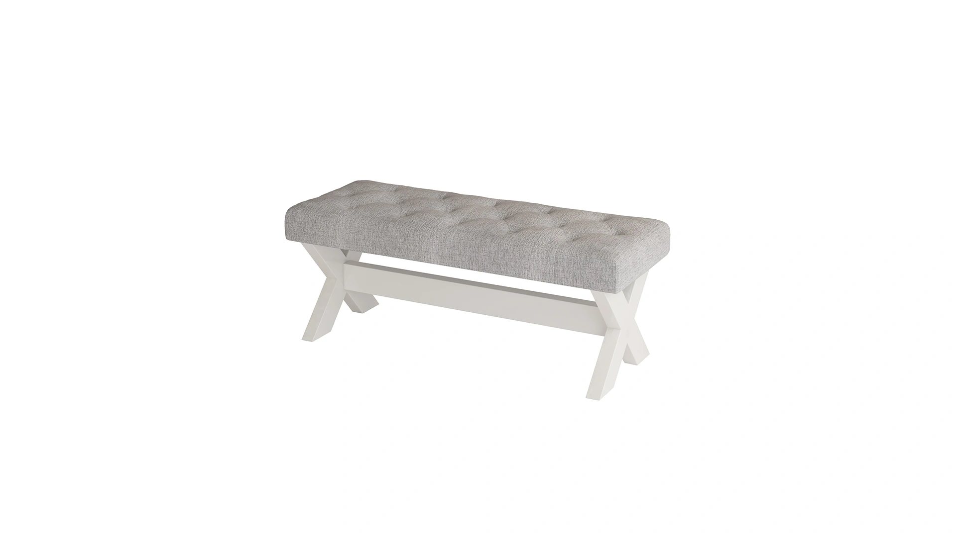 Angelic Bench stands out with its country style and elegant design. Angelic Bench, which captivates with its white wooden cross-legged design, will complement the elegance of your home with its specially selected fabric and comfortable upholstery.