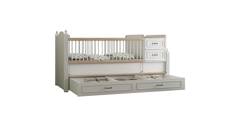 Angelic Children's Room Set brings aesthetics and comfort to your children's room with its modern and stylish design. The main piece of the set, the Toddler crib, is produced using white and arizona melamine coated chipboard. The headboard is upholstered with beige linen fabric with capitonne detailing, and the natural wood material is equipped with organically painted guardrails. The guardrails can be mounted to the right or left, providing flexible use. With the toddler bed attachment, it offers extra space for use. Angelic Children's Room Set stands out with its safe and functional modules. The Montessori crib offers guardrail and lower crib attachment options to ensure the safety of children. Produced with materials that comply with European child standards, the set prioritizes the safety of your children. Angelic Children's Room Set is made with natural and organic materials, providing a healthy living space. With its modern and functional design, it will add an aesthetic touch to your children's room and ensure long-term use.