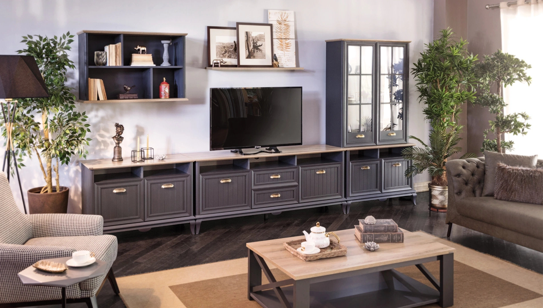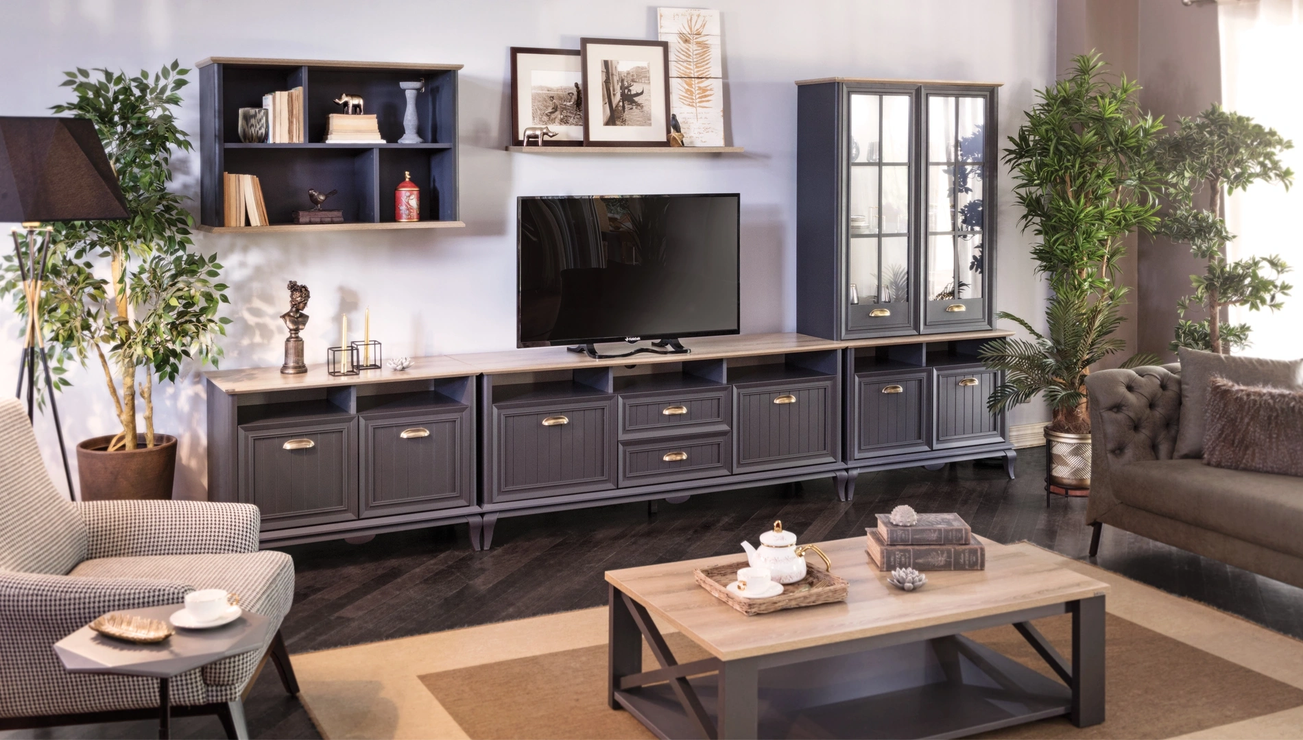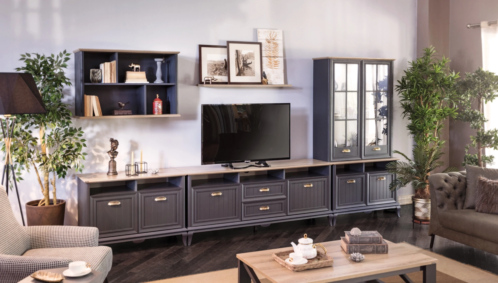 Angelic Dark Tv Ünitesi, modern ve sofistike tasarımı ile evinizin dekorasyonunu tamamlar. Antrasit gri ve Arizona meşe renkleri, metal kulplar ile mükemmel bir uyum içinde sunulmaktadır. Çekmeceli kapaklı ve açık bölmeleri, eşyalarınızı düzenlemenizi ve sergilemenizi kolaylaştırır. Country tarzının zarif detayları, salonunuzda sıcak ve davetkar bir atmosfer yaratır. Angelic Dark Tv Ünitesi, hem fonksiyonel hem de dekoratif özellikleri ile salonunuzun vazgeçilmez bir parçası olacaktır. Eşyalarınızı saklamak ve sergilemek için ideal bir çözümdür. Metal kulplar, estetik ve fonksiyonel bir dokunuş sağlar. Geniş depolama alanı, evinizdeki düzeni sağlamanıza yardımcı olur. Kolay temizlenebilir yüzeyi ve kaliteli malzemeleri ile uzun yıllar boyunca güvenle kullanabilirsiniz.