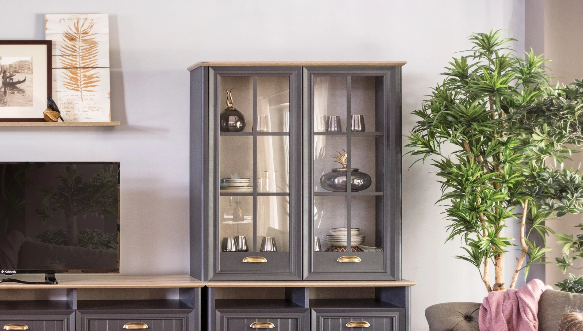 Angelic Dark Tv Ünitesi, modern ve sofistike tasarımı ile evinizin dekorasyonunu tamamlar. Antrasit gri ve Arizona meşe renkleri, metal kulplar ile mükemmel bir uyum içinde sunulmaktadır. Çekmeceli kapaklı ve açık bölmeleri, eşyalarınızı düzenlemenizi ve sergilemenizi kolaylaştırır. Country tarzının zarif detayları, salonunuzda sıcak ve davetkar bir atmosfer yaratır. Angelic Dark Tv Ünitesi, hem fonksiyonel hem de dekoratif özellikleri ile salonunuzun vazgeçilmez bir parçası olacaktır. Eşyalarınızı saklamak ve sergilemek için ideal bir çözümdür. Metal kulplar, estetik ve fonksiyonel bir dokunuş sağlar. Geniş depolama alanı, evinizdeki düzeni sağlamanıza yardımcı olur. Kolay temizlenebilir yüzeyi ve kaliteli malzemeleri ile uzun yıllar boyunca güvenle kullanabilirsiniz.