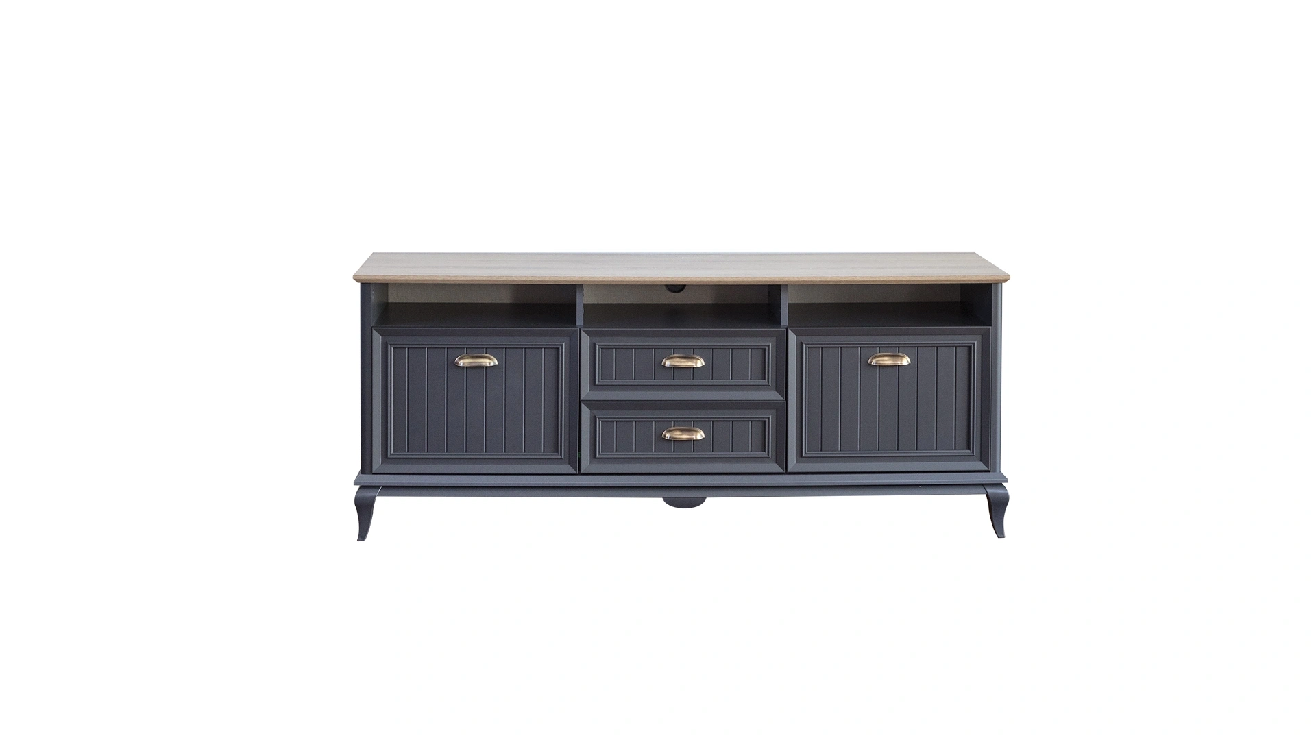 Standing out with its country style, Angelic Dark TV Unit adds a stylish touch to your living room with its smoked color upbeat with metal handles. Offering extra space for your items and objects with its drawer, door and non-door sections, Angelic Dark Wide Tv Unit brings warmth and elegance to your living room.
