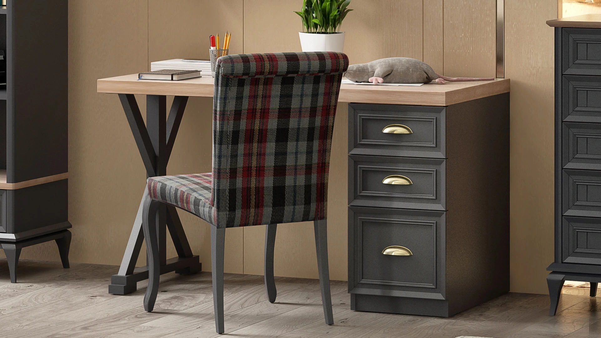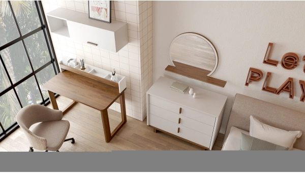 Angelic Dark Study Desk adds elegance to youth bedrooms with smoked and natural wood combinations.