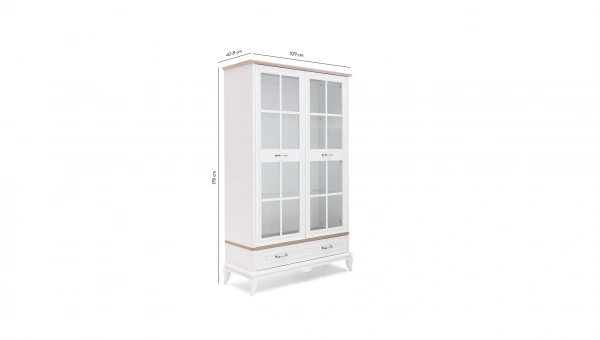 Angelic Display Cabinet brings elegance to your home with its framed glass design. It also creates storage for your objects with its two drawers at the bottom.