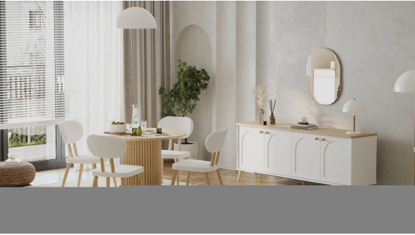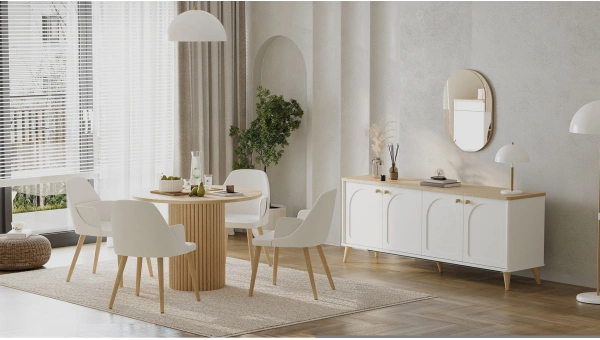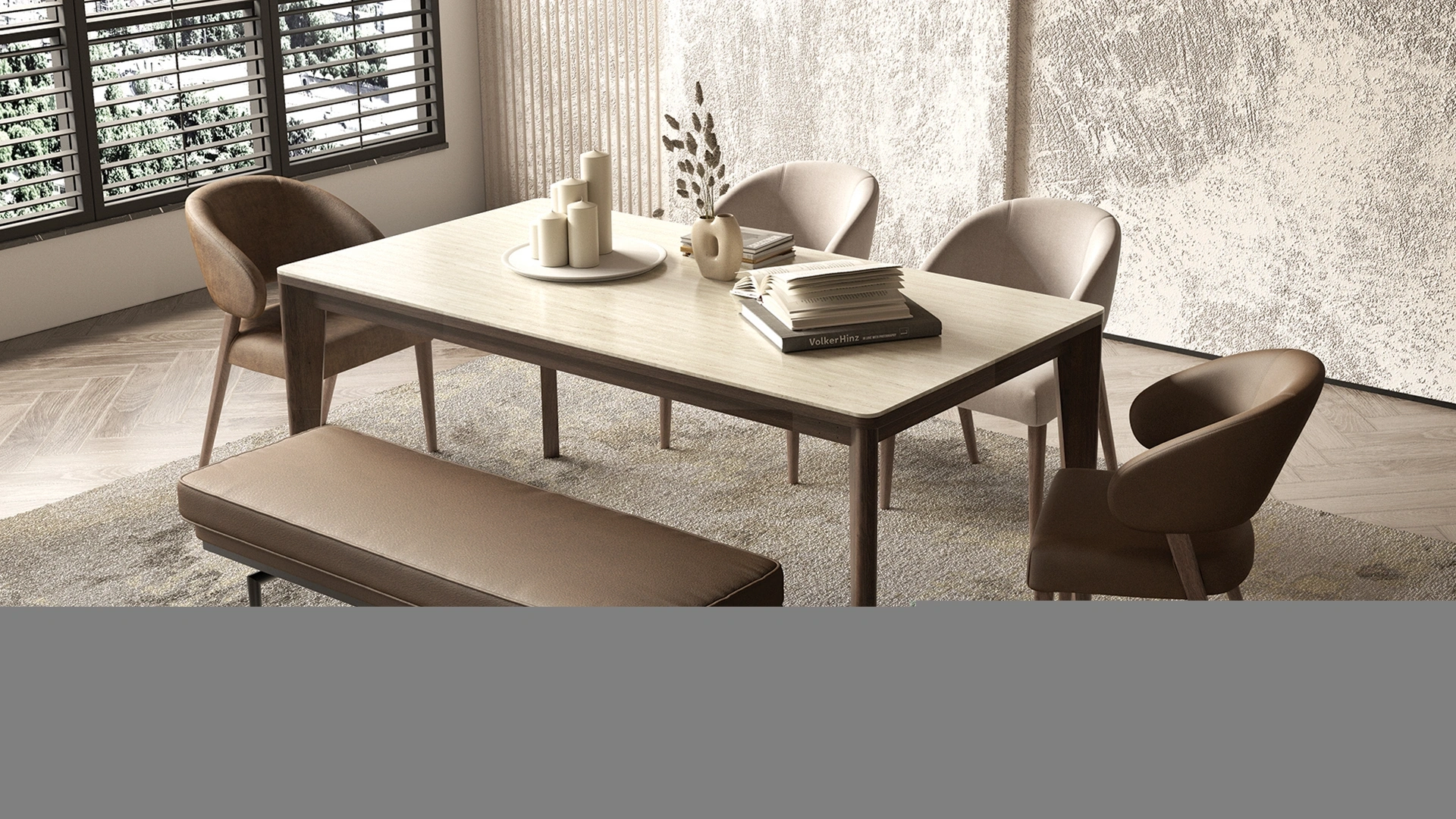 Armin Fixed Table 180x95 cm is an excellent choice for medium-sized dining rooms and stands out with its modern design. This table offers an aesthetic blend of elegant ball walnut wood and durable travertine stone surfaces, adding natural elegance to any interior decor. The solid wood legs provide a sturdy and durable structure, while the minimalist lines offer a modern and sophisticated look. Despite its compact size, the table can comfortably accommodate six to eight people and provides a wide range of uses for both family meals and formal meetings. Armin Fixed Table is an ideal option to enrich your dining room and add a modern touch. Each detail of this table, carefully designed, will maintain its value over the years with its durability and stylish design and become a part of your home.