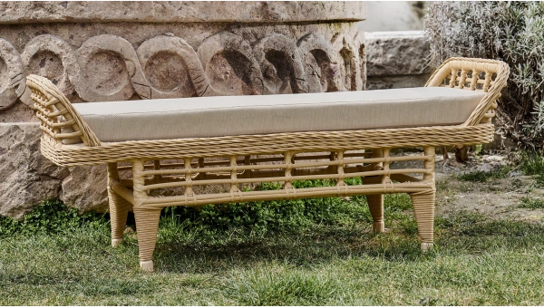İster masa takımınızı isterseniz de bahçe ve balkon oturma grubunuzu Bamboo Rattan Bench ile tamamlayarak açık havadaki yaşam alanlarınıza şık bir dokunuş yapabilirsiniz. Su, güneş, rüzgar gibi açık havanın tüm zorlu şartlarına karşı yüksek dayanıklılık sunan alüminyum iskelete ve olefin yapılı kumaşa sahip Bamboo Rattan Bench, uzun ömürlü kullanım imkanı tanıyor. Ayrıca dayanıklılığı el emeğinin izlerini taşıyan şık bir tasarımla buluşturması sayesinde dış mekandaki yaşam alanlarınızın hem estetik hem de kullanışlı tamamlayıcısı oluyor.