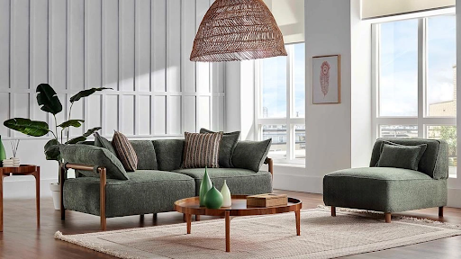 2025’te koltuk takımı tasarımlarında ahşap ayak ve çerçeve detayları öne çıkıyor. Kumaş dokularla harmanlanan bu parçalar, hem klasik hem modern tarzlara uyum sağlıyor. Özellikle ince işçilikli ahşap kol detayları, mobilyaya karakter katıyor.