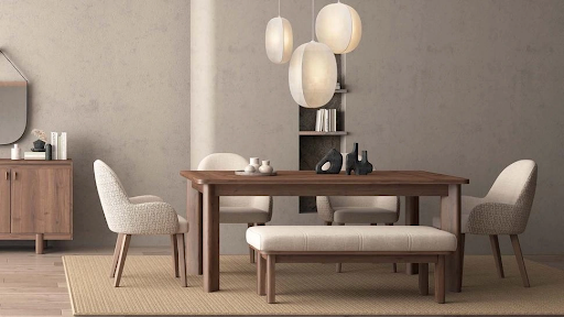 Aynı şekilde, yemek masası ya da mutfak masası gibi alanların kalbi olan mobilyalarda da bu sadelik dikkat çekiyor. Parlak cila yerini mat ve dokulu yüzeylere bırakırken, sandalyelerle ya da bench türü oturma elemanlarıyla yapılan kombinasyonlar mekâna hafiflik katıyor.