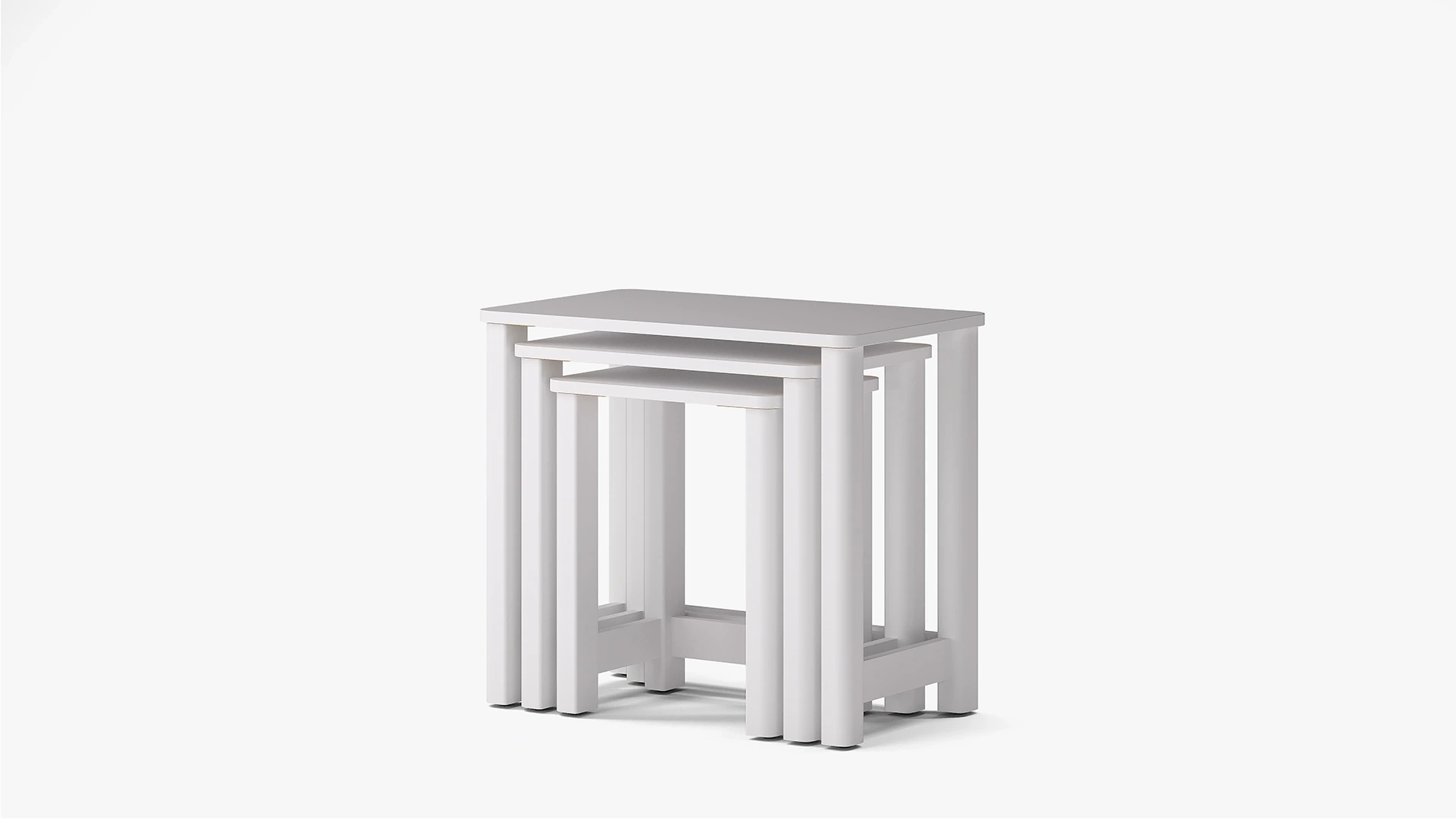 Üç farklı boydaki sehpa seti, ihtiyaca göre esnek kullanım sunar. Bir arada ya da ayrı ayrı kullanılabilir.