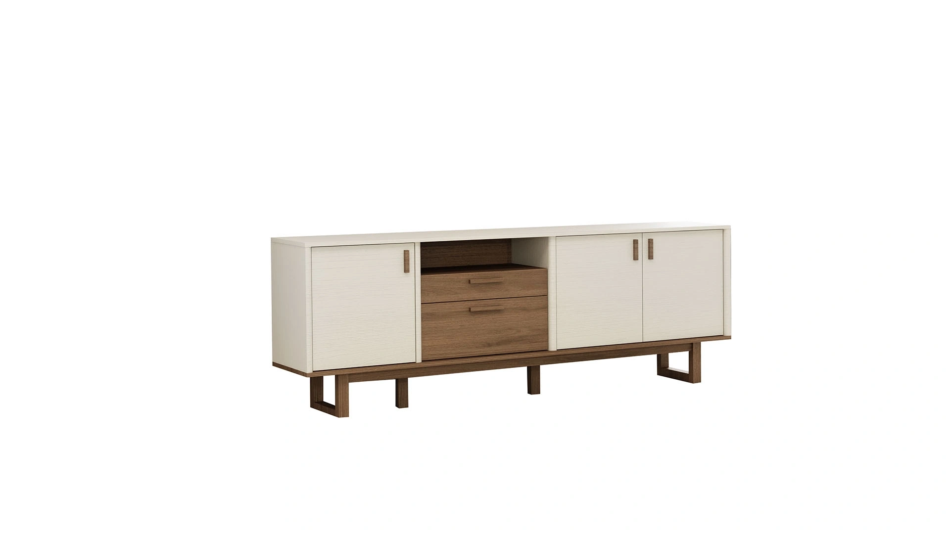 Standing out with its asymmetrical design, Calina Sideboard provides extra space for your dinnerware. Calina Sideboard brings the beauty of nature to your home with the beautiful harmony of walnut and white and provides ease of cleaning with its high-leg design.