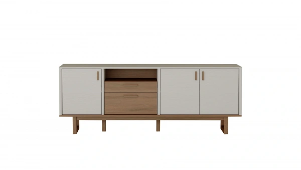 Calina Sideboard impresses with its asymmetrical design and double color combination.
