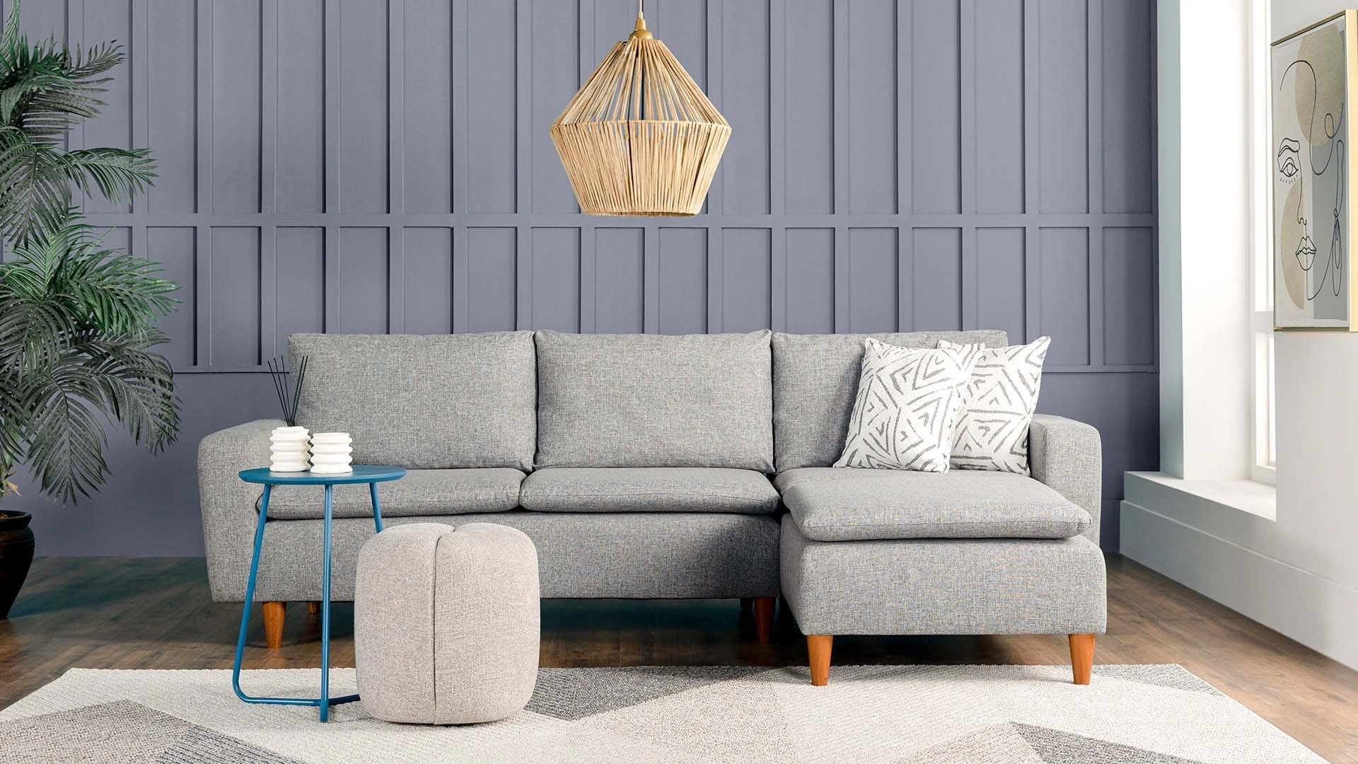 Function-focused and easily adaptable to peaceful living spaces, Capri Corner Sofa offers you a new user experience with its features. Removable cushion covers, high legs from the ground, changeable corner direction, and wipeable fabric make your life easier. It appeals to users who do not compromise on comfort with its extra sponge structure in the seating part and inner spring system. Capri Corner Sofa, with assembly details that everyone can easily set up and connection parts, brings Kelebek's innovative style and quality to your home. The modular product will be delivered to your address by logistic cargo. Installation is the responsibility of the customer.