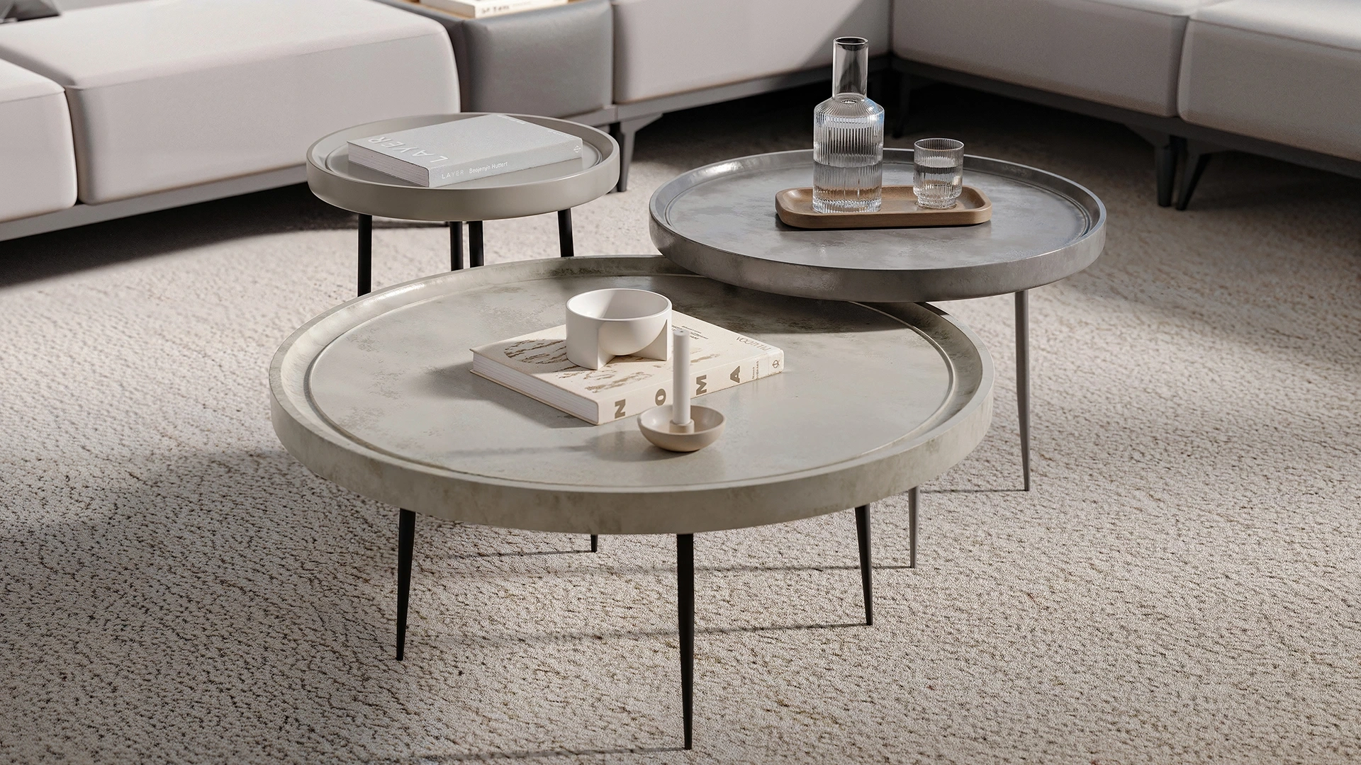With its elegant metal legs and patterned gray surface, the Carlen coffee table offers a stylish and functional use. Thanks to its round shape, it gives a soft look to the space. It has an aesthetic and easy-to-clean structure with MDF surface with membrane coating. It can be easily used in living rooms with its wide surface.