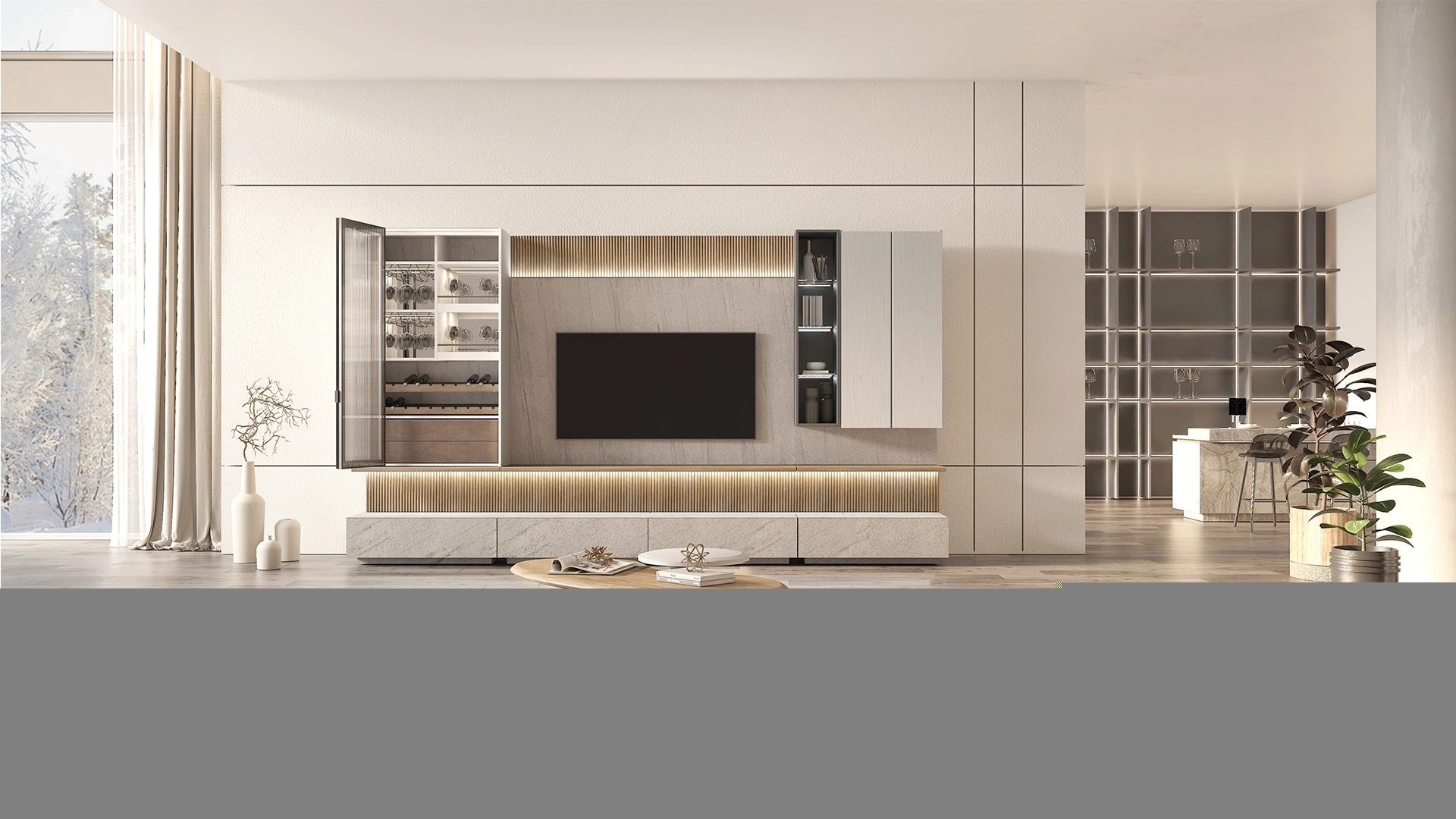 Case Tv Back Panel, designed with inspiration from nature, helps you hide the cables you don't want to be seen in your living room, while complementing the elegance of your home.