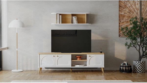 Case TV Base Unit dazzles with the perfect harmony of earth tones, stone texture and wood. Case TV Base Unit, designed with inspiration from nature, draws attention with its functional structure. Case TV Base Unit, which is offered with glass and wooden cover alternatives, will complete the elegance of your home with its led lighting system.