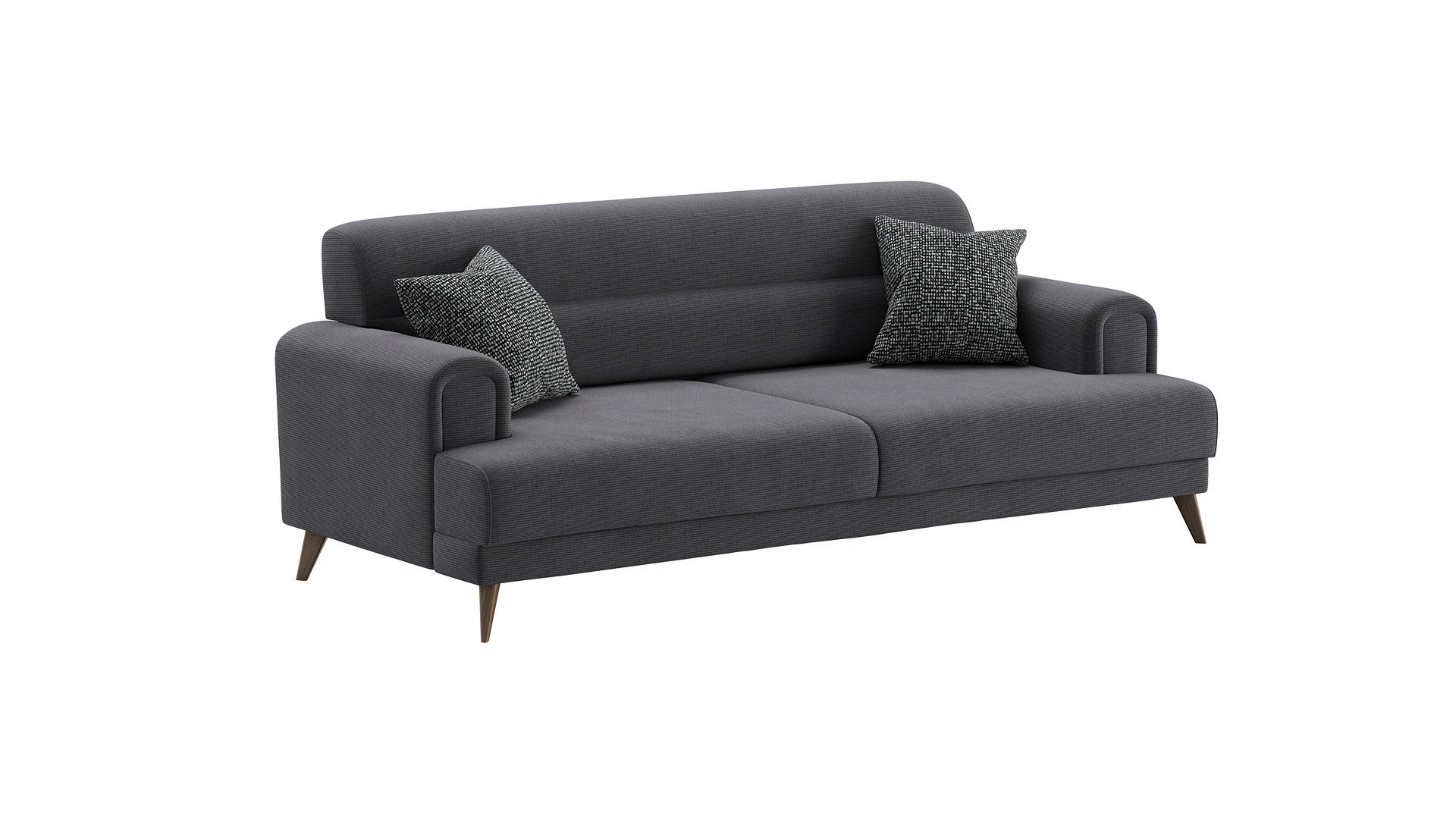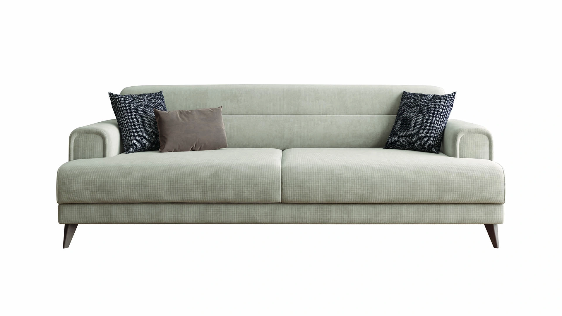 Eva Koltuk Takımı, modern tarzı, zarif çizgileri ve rahat yapısıyla dikkat çeker. Oval kol ve sırt yapısıyla tekli, ikili ve üçlü koltuktan oluşan bu takım, ekstra dolgulu ve özgün desenli kumaşlarıyla evlerde pozitif bir atmosfer oluşturur. Üçlü koltukta bulunan mekanizma sayesinde sırt kısmı geriye kayarak yatak olabilme özelliği sunar ve aynı zamanda içinde depolama alanı sağlar. Metal çerçeve ile güçlendirilmiş ahşap iskelet ve 30DNS sünger kullanılarak üretilen Eva, ceviz renk ABS ayaklarla tamamlanmıştır. Krem ve somon renkli kumaş kombinasyonlarının yanı sıra, berjerde kullanılan özel desenli kumaşla da farklılık sunar. Eva Koltuk Takımı, modern ve konforlu bir oturma alanı arayan kullanıcılar için ideal bir tercihtir.