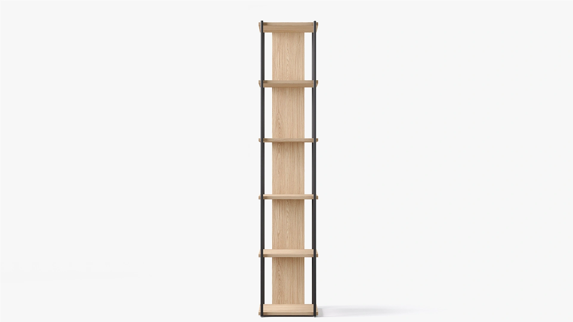 Dar kitaplık, sınırlı alanda kitap ve aksesuar yerleşimini mümkün kılar. Modüler yapısı sayesinde birden fazla modül yan yana eklenerek geniş yüzeylerde de kullanılabilir.