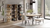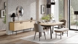 Grid Yemek Odası Takımı, açılır ve sabit masa seçenekleri, konsol ve ayna modülleriyle hem görsel hem de fonksiyonel açıdan zengin bir bütünlük sunar. Meşe yüzeylerin sıcaklığı ile siyah detayların modern çizgisi bir araya gelir. Sandalye alternatifleriyle farklı tarzlara kolayca uyum sağlar. Dengeli tasarım dili sayesinde hem ferah hem de karakterli bir yemek alanı oluşturur.