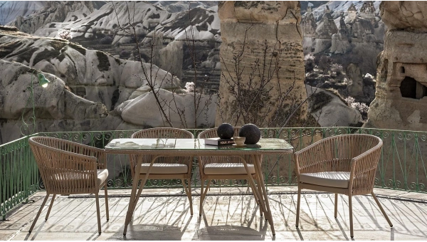 Alüminyum iskelet ve natürel camın bir araya geldiği Hera İpli Masa, dayanıklılığın ve estetiğin mükemmel bir kombinasyonunu sunuyor. Doğanın dokusunu yansıtan natürel cam detayları masaya benzersiz bir zarafet katarken alüminyum iskelet, sağlamlığı ve dayanıklılığı garanti ediyor. Pazar kahvaltıları, akşam yemekleri veya dostlarla keyifli sohbetler için mükemmel bir ortam sağlayan Hera İpli Masa, sizin ve sevdikleriniz için konfor, estetik ve işlevsellik vadediyor. Dış mekanlarınızda yaşayacağınız özel anları Hera İpli Masa ile daha keyifli hale getirebilirsiniz.