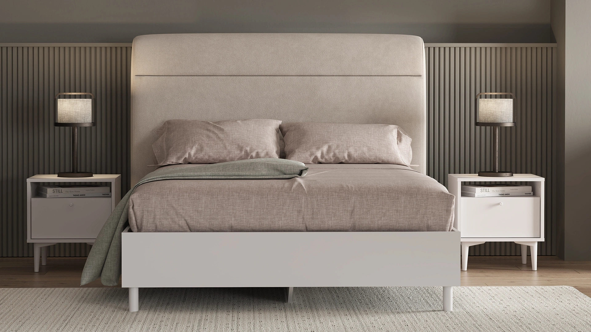 Şık ve düzenli bir yatak odası için modern bir seçim.