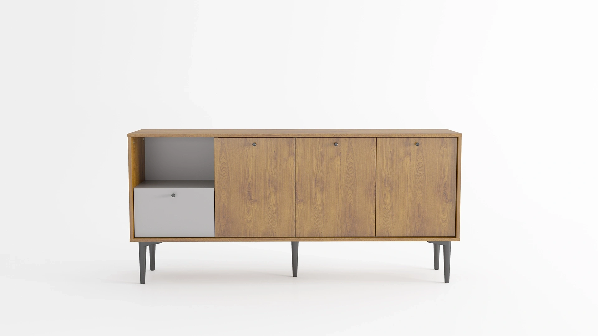 Tortona meşe ve Mozambik gri kombinasyonuyla yalın çizgileri ve geniş depolama alanıyla öne çıkan bu konsol, yemek takımlarınızı ve diğer eşyalarınızı düzenli bir şekilde saklamanızı sağlar. Modern ve estetik tasarımıyla her dekorasyona uyum sağlar.
