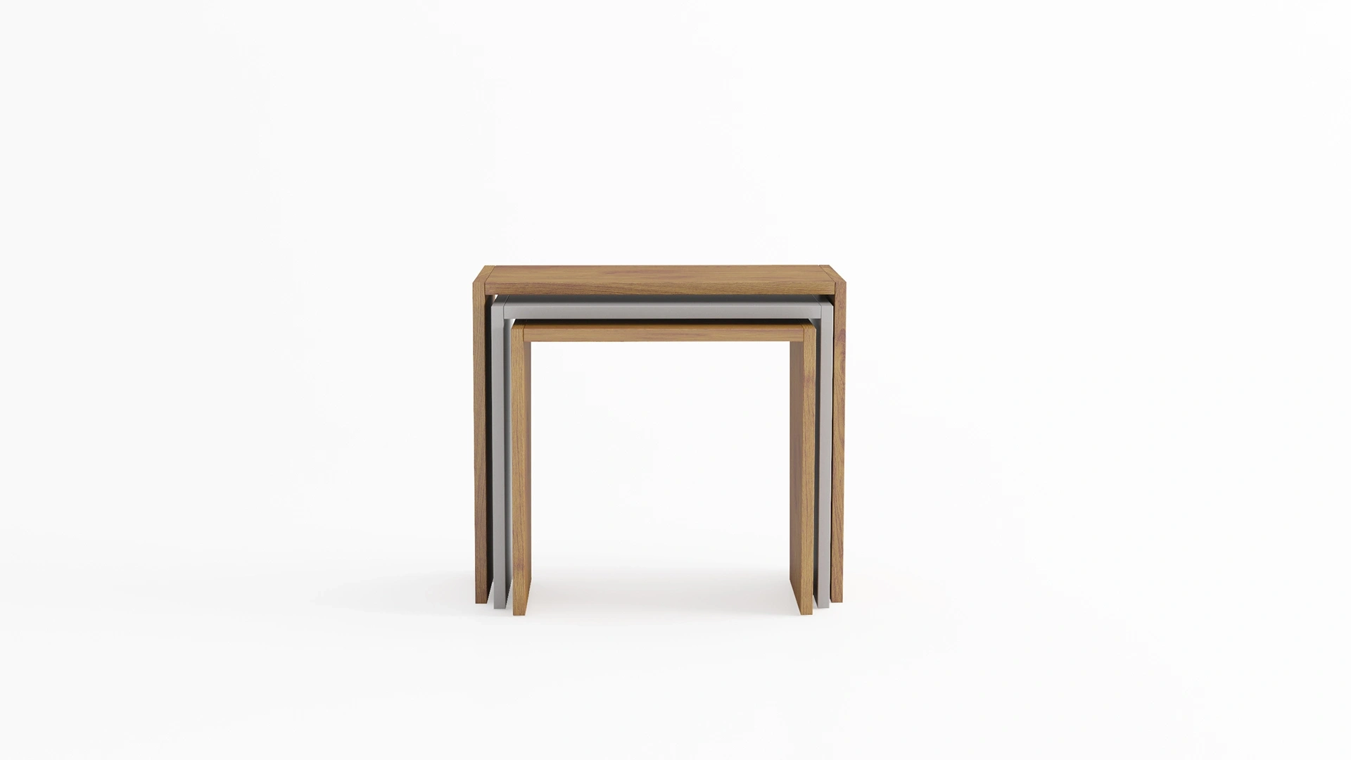 Üç farklı boyuttaki sehpadan oluşan bu set, ihtiyacınıza göre kolayca bir araya getirilebilir veya ayrı ayrı kullanılabilir. Şık tasarımıyla hem işlevsel hem de dekoratif bir seçenektir.