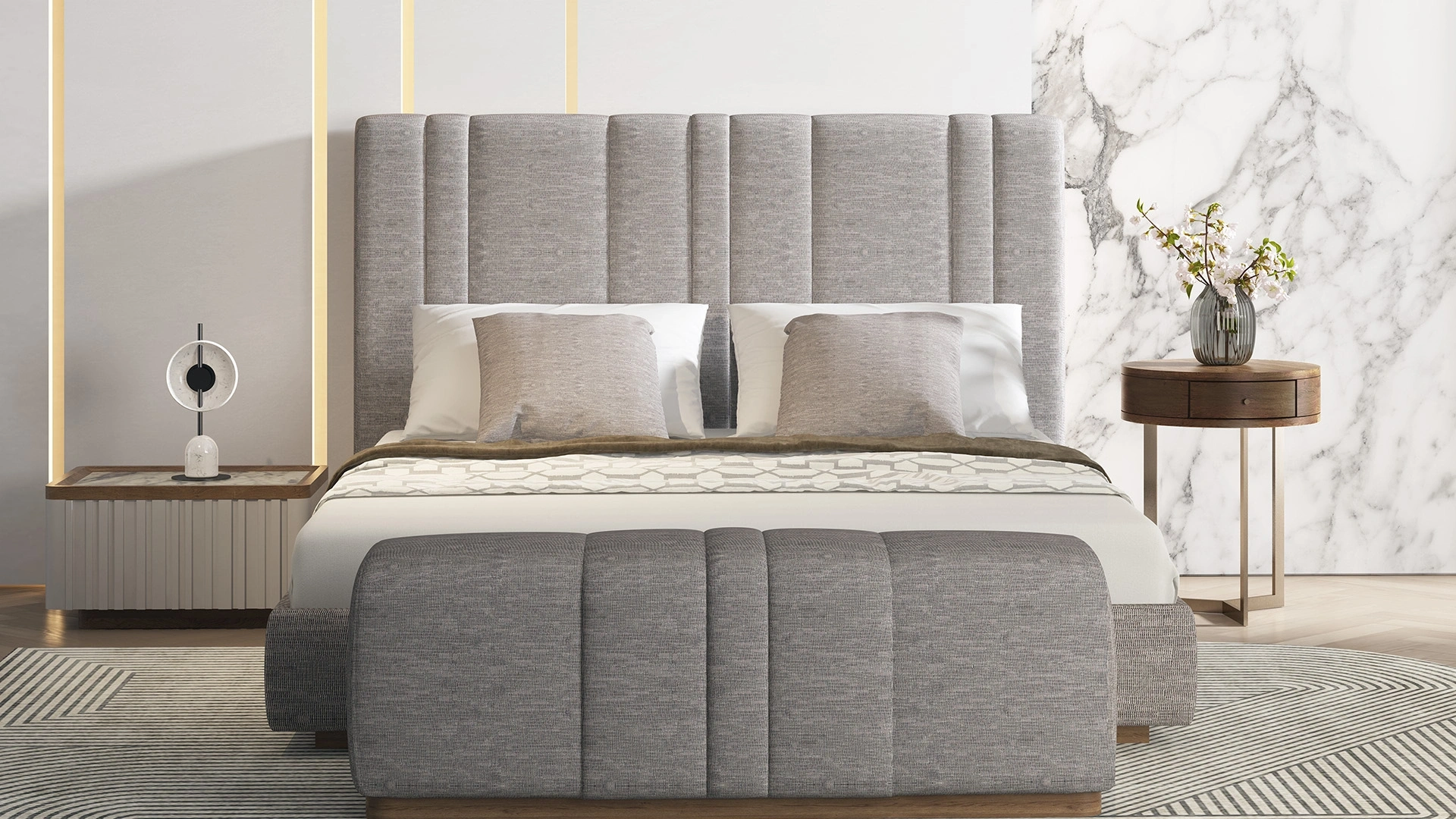 The Lionte Bedroom Set enhances the aesthetics of your bedroom with its stylish and modern design. Crafted from durable materials, it offers ample storage space and comfortable use. It stands out with its elegant details and functionality.
