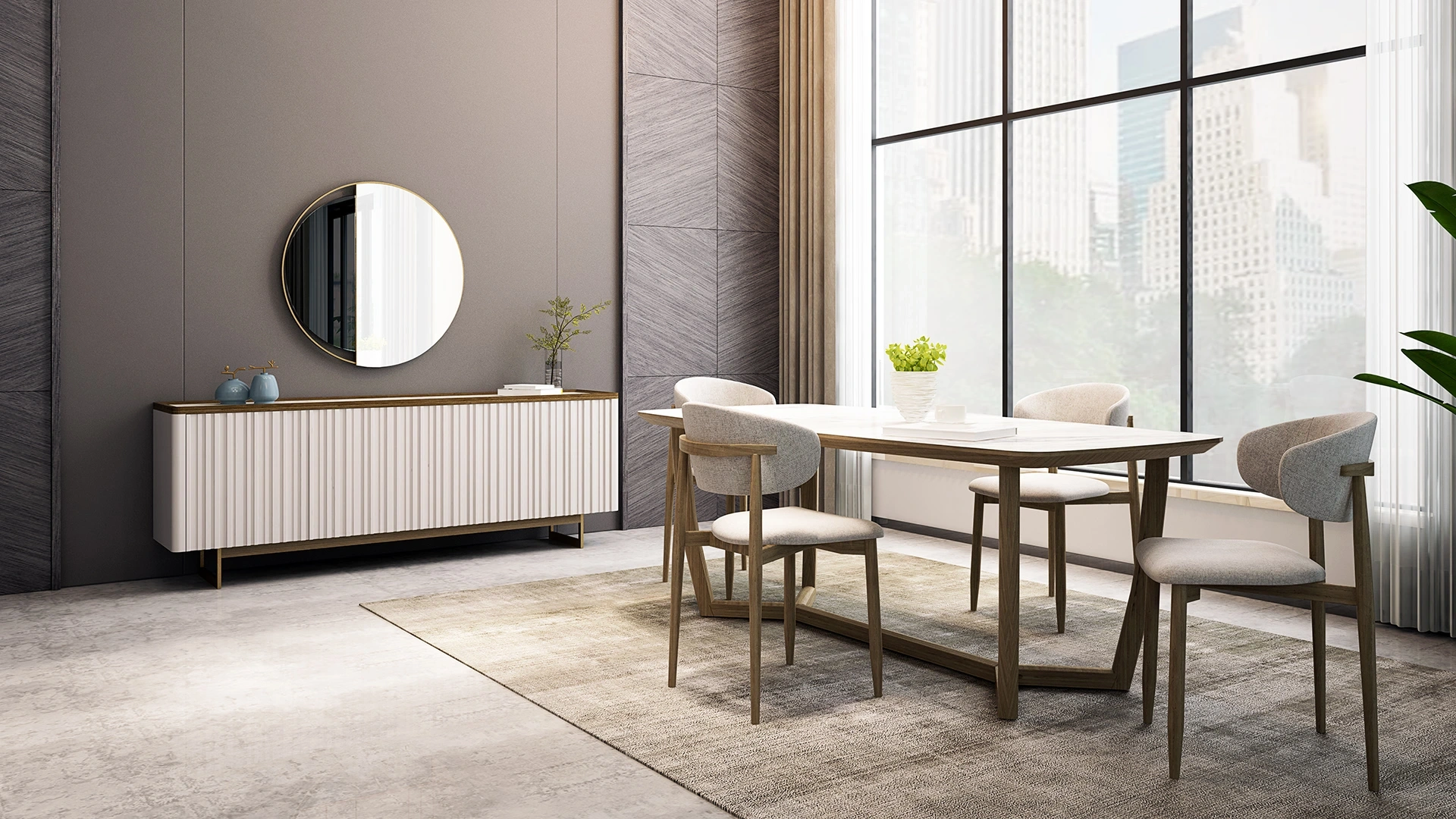 Lionte Yemek Odası, modern ve zarif tasarımı ile yemek alanınıza sofistike bir dokunuş katıyor. Dayanıklı malzemelerden üretilmiş olup, geniş masa yüzeyi ve konforlu sandalyeleri ile aile yemekleri ve davetler için idealdir. Zarif detayları ve modern çizgileri ile her türlü yemek alanına uyum sağlar. Masa ve sandalyelerin sağlam yapısı uzun ömürlü kullanım sunar. Kolay temizlenebilir yüzeyi ile bakım gerektirmez. Lionte Yemek Odası, hem estetik hem de fonksiyonel özellikleri ile yemek alanınıza değer katar. Geniş depolama alanları ve zarif tasarımı ile yemek odanızın vazgeçilmez bir parçası olacaktır.