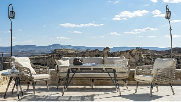 El emeğiyle örülen özel Wintech rattan ip örgü ile füme camın şık duruşunu yansıtan Loop İpli Yüksek Orta Sehpa bahçe ve balkonlara sıcaklık ve zarafet katıyor. Paslanmaya karşı dayanıklı alüminyum iskeleti hem dış mekanlarınızla mükemmel bir uyum yakalıyor hem de uzun ömürlü bir kullanım vadediyor. Loop İpli Yüksek Orta Sehpa ile özgün tasarımların doğal izlerine yer açın, sıcak ve şık atmosferi bahçe ve balkonlarınızda yakalayın.