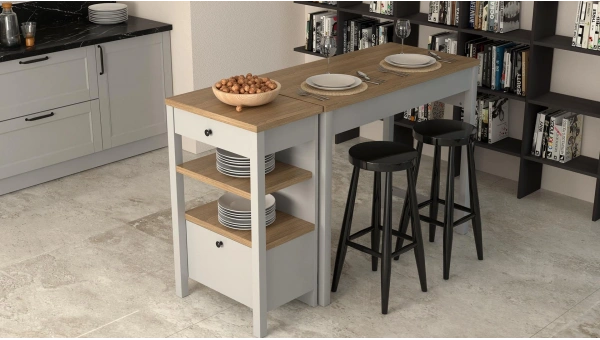 Impressing with its simple design, Martha Bar Table will add elegance to your home with its unique harmony of ice grey and oak.