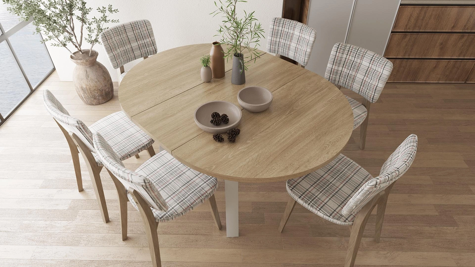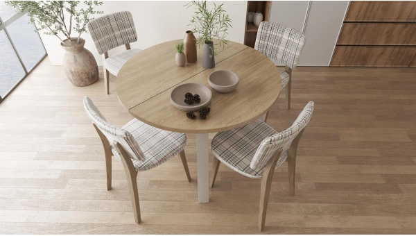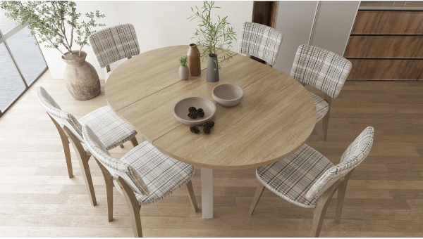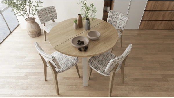 Martha Round Extendable Table completes the decoration of your home with its stylish and modern design. With its extendable feature, it can be expanded when necessary and provides more usable space. Made of durable materials, this table offers long-lasting use. The 110 cm wide table is ideal for family meals and invitations by providing a wider surface when opened. It draws attention with its high-quality workmanship and modern lines. It does not require maintenance with its easy-to-clean surface. Martha Round Extendable Table is a perfect option for both daily use and special invitations. It will be one of the most stylish and useful pieces of your home with its ergonomic structure and elegant design.