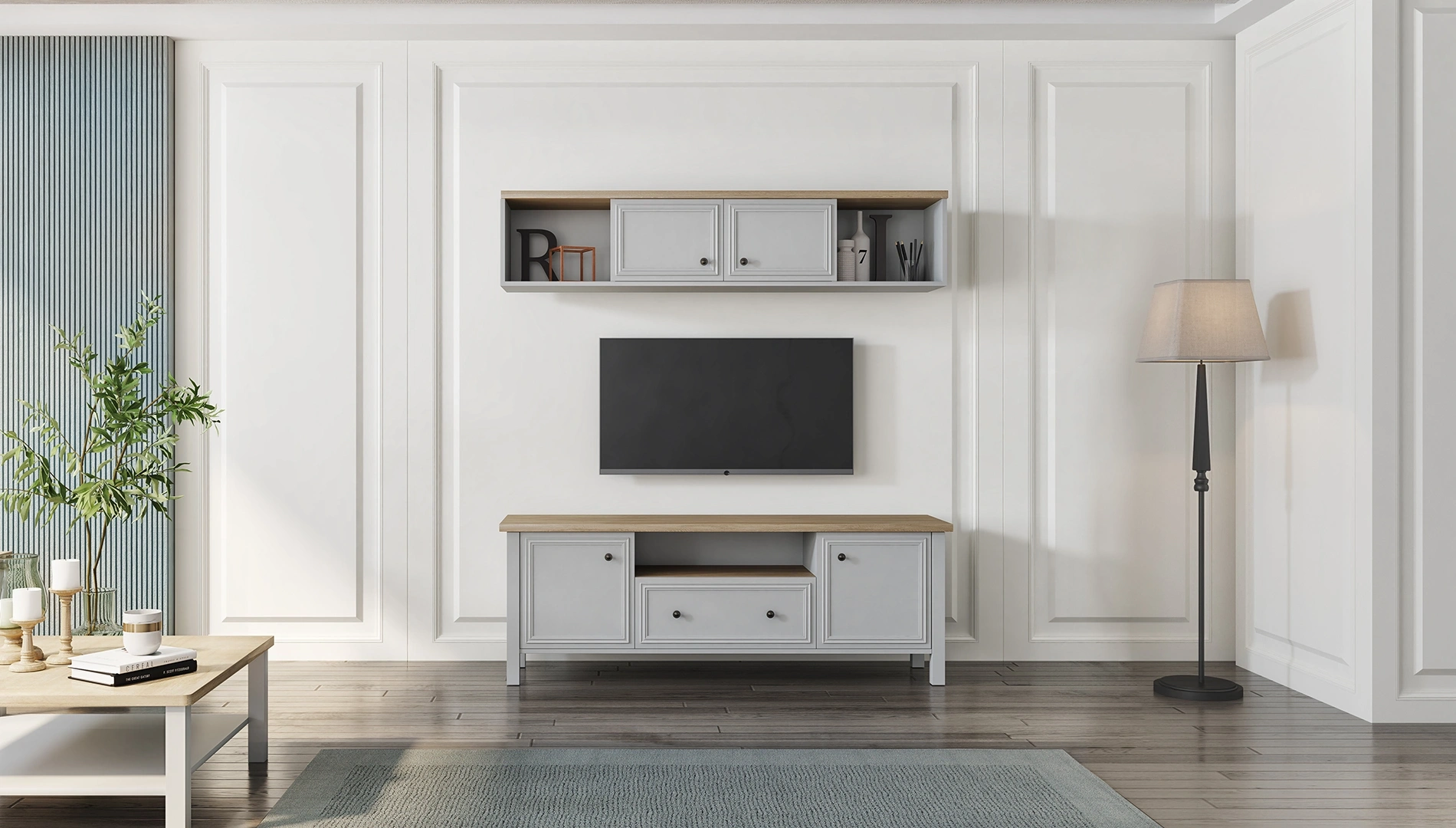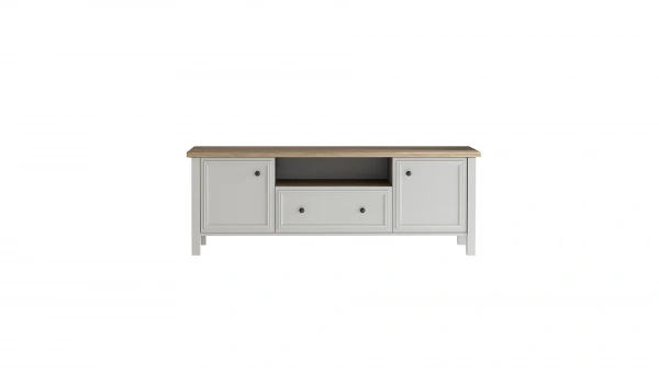 Martha TV Base Unit (180cm) allows you to create a spacious corner in your home with its natural wood and white colors.