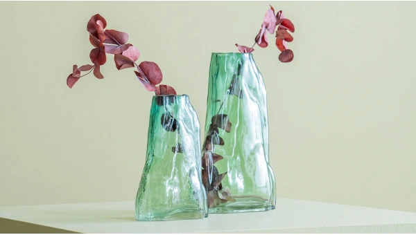Montagna Cam Vazo, açık yeşilden koyu yeşile uzanan tonları ve keskin açılı tasarımıyla dağları anımsatır. Geometrik formuyla modern mekânlara çarpıcı bir katkı sağlar.