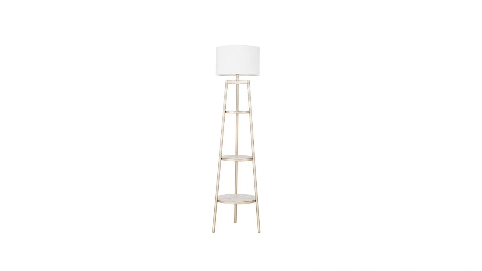 Dazzling with the elegant combination of gold and white, Myria Floor Lamp provides extra space for your objects with its shelf leg design.