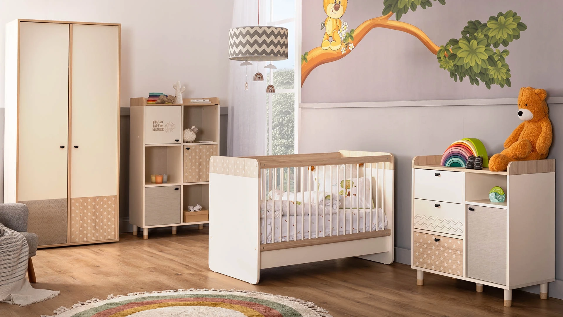 Inspired by the imagination of children, Natural New Generation Bedroom offers comfort and functionality together. Drawing attention with its two-stage height adjustment, Natural Baby Bedstead is the right choice for your baby with its fun design concept and healthy natural wood structure.